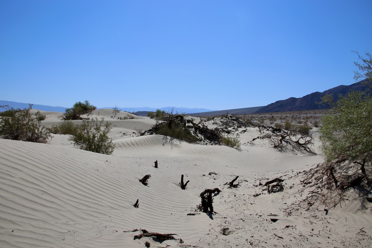 Then I get to overhear a feisty Filipina give her friend who wants to go to Japan a hard time for not understanding her accent when she asked if there was a flag at the ranger station. I stop at the Mesquite Flat Sand Dunes, and if I were with someone, I would most likely see the hills, trees, and mountain range in the background. Being alone, I focus on the shadows, burrows, aeolian ripples, and saltation before being interrupted by a homeless Bermudian punk and his lady Indiana Jones of a partner’s photo shoot.