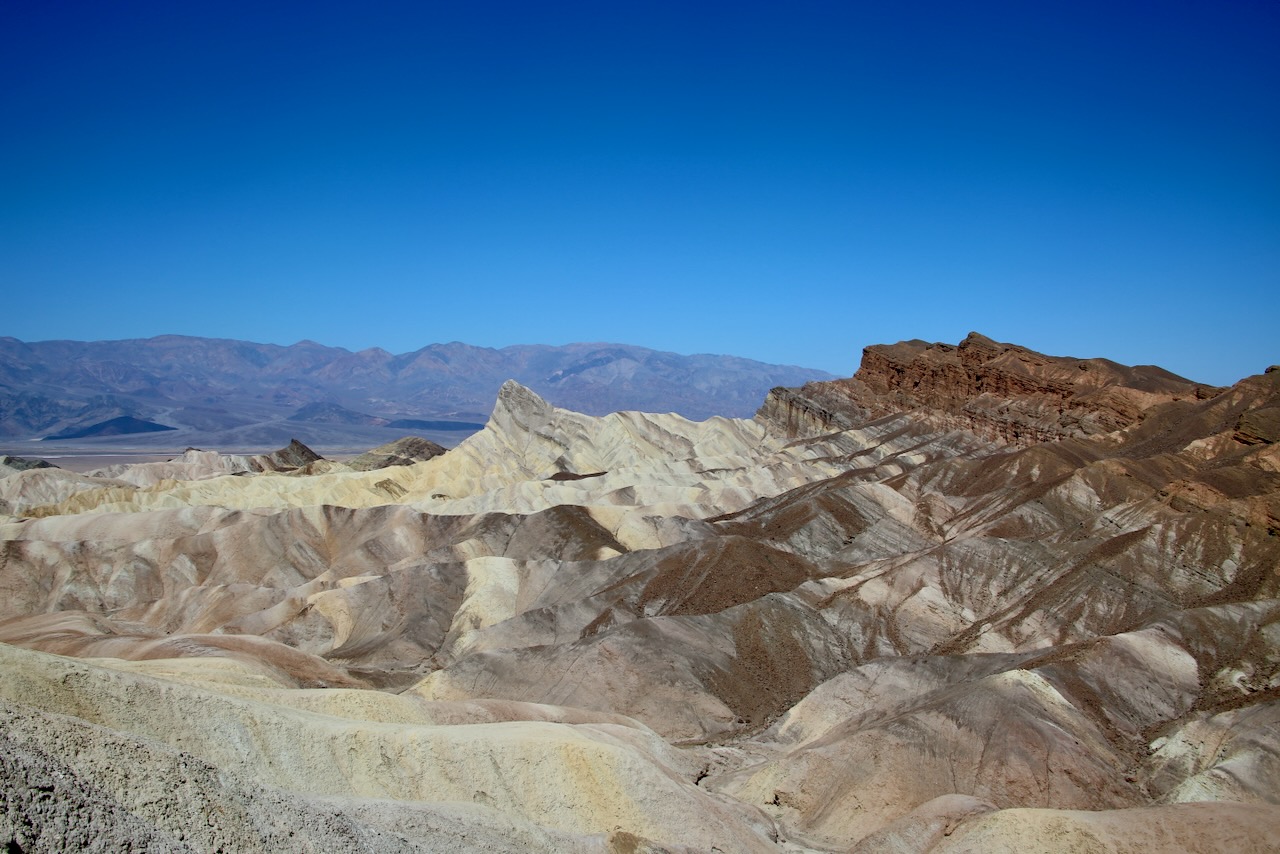 Continuing east is Zabriskie Point, the highest mountain in the Panamint Range, rising over 11,000 ft. Some of the rocks look like cake slices sliding to the floor as a toddler carries a plate at a 45° angle. Once in Nevada, I walk the mile and a half of boardwalks at the Ash Meadows National Wildlife Refuge, named after the galleries of ash trees described in expedition notes from 1893. This park is designated a Ramsar site — any wetland of international importance under the Convention signed in Iran in 1971, and now includes over 2,100 sites worldwide.