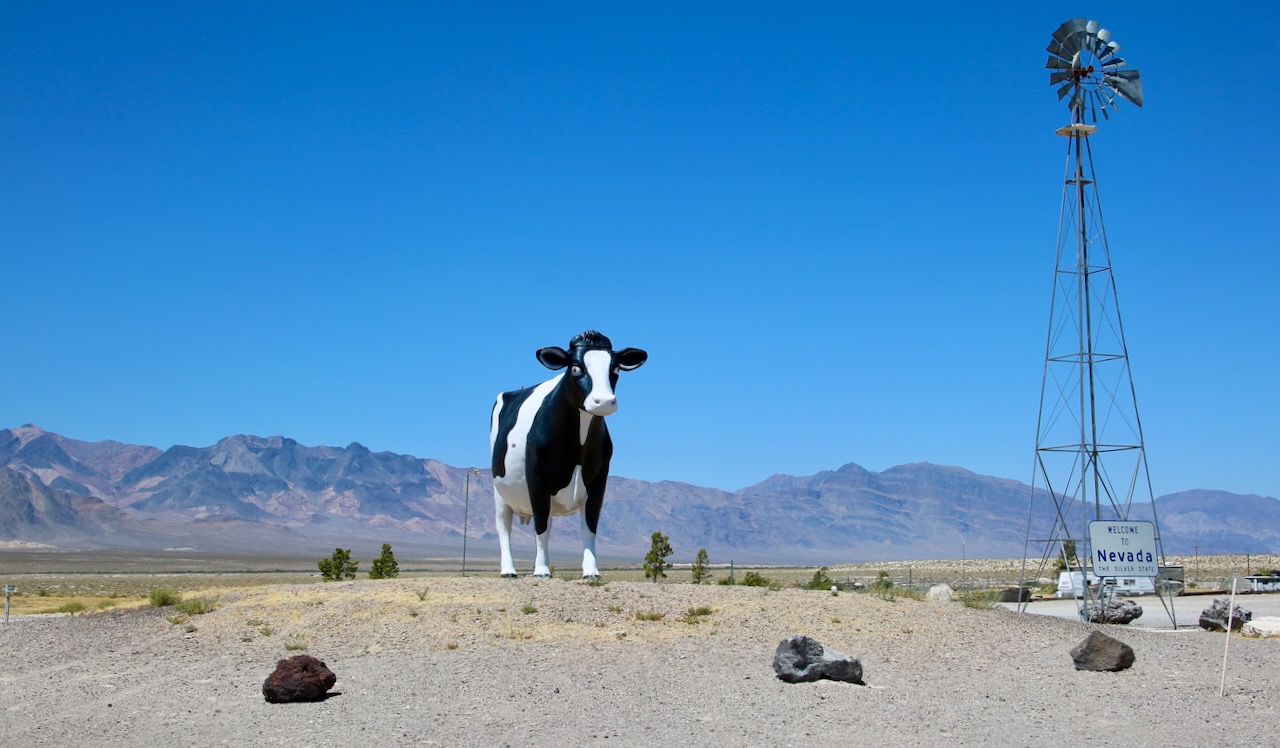 Another boardwalk delivers me past fourwing saltbush (used in the nixtamalization of maize), a honey bee (with static electricity gained by flying that attracts pollen), a Zebra-tailed lizard (highly tolerant of extreme heat by alternating legs), and possibly some Amargosa pupfish (the most inbred species due to their very low numbers). I describe the low mountain range as a scoopneck as I approach Las Vegas where I will stop at the Erotic Heritage Museum to watch porn and how a body mold gets made. That wasn’t my intent and I had no idea what to expect on the exhibits or the size of the displays.