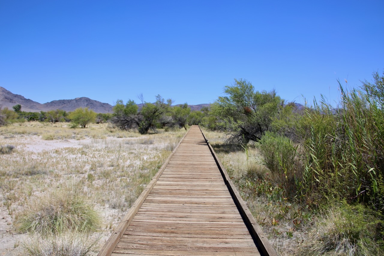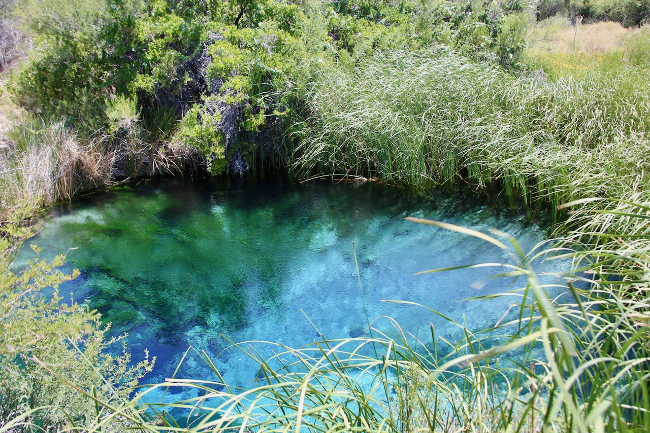 Along the boardwalk, I see Eastern Pondhawk dragonflies and mountain pink flowers. I listen to the wind on top of the tall grass and the crickets hidden below. The entrance sign claims this is “where the desert springs to life,” and that’s accurate. At first glance, this park is very much a sparse desert. The closer to the greenery you get, the more the water sparkles, especially the crystal clear turquoise spring pool. This critical habitat will send me to Devils Hole in search of the endangered pupfish, which have yet to be found anywhere else.