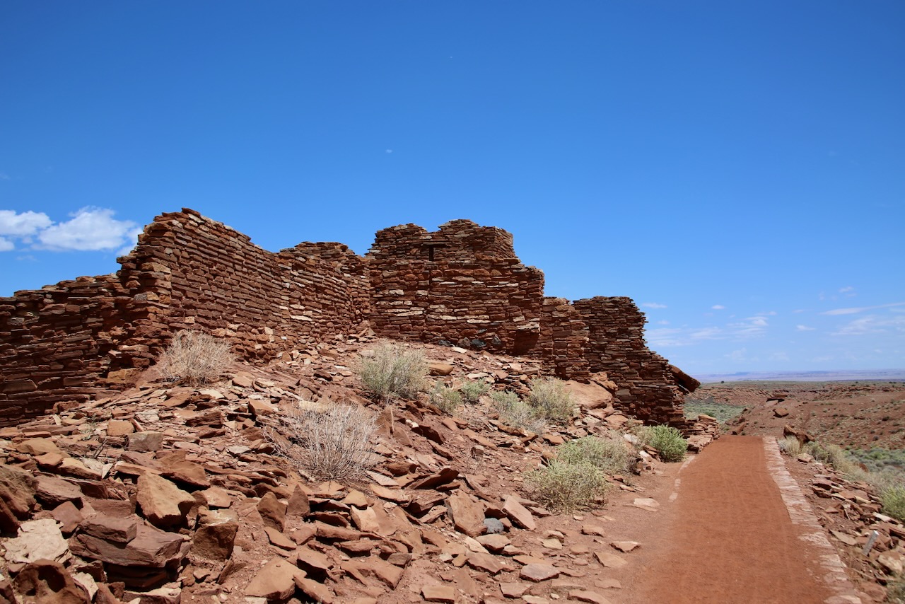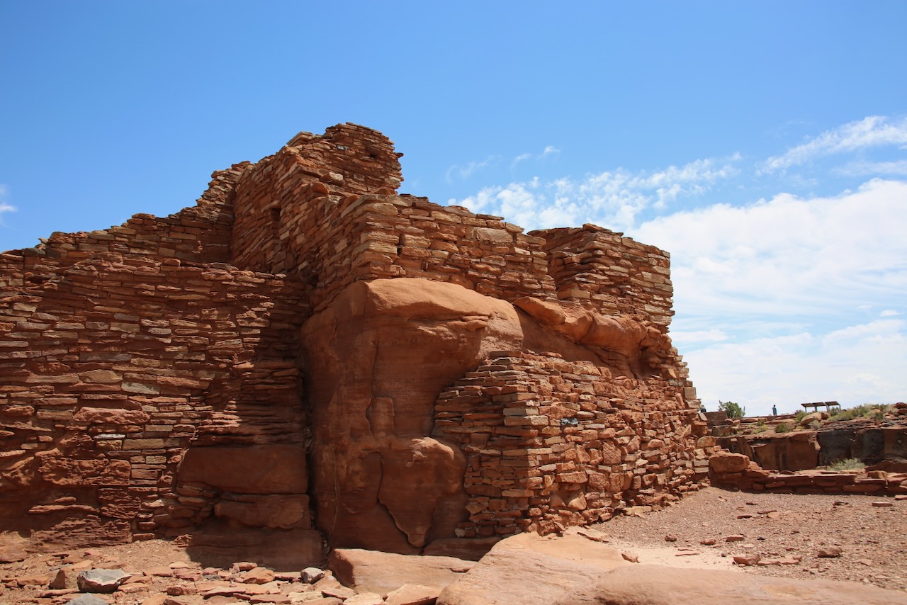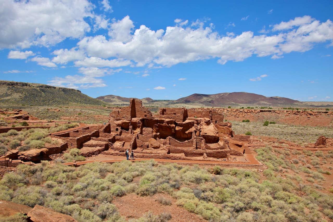 I walk around Wupatki National Monument making friends with a Northern Flicker bird (a member of the woodpecker family), learning that rangers lived in a reconstructed pueblo for $10 a month (those walls and roofs were removed in the 1950s), and continually pointing out where a running child was to her mom as the temperature proceeded to climb. On my drive to Old Caves Crater, I will pass a dust devil while listening to songs about ice cream and kitchen tables. There are remains here of the Sinagua, now known as the Hopi and Havasupai, who moved away from dwindling water sources.