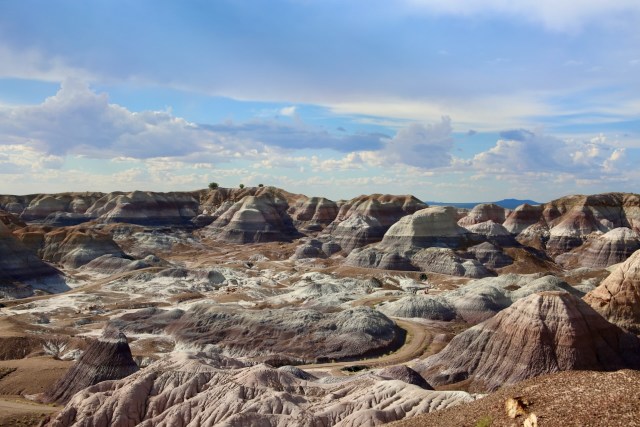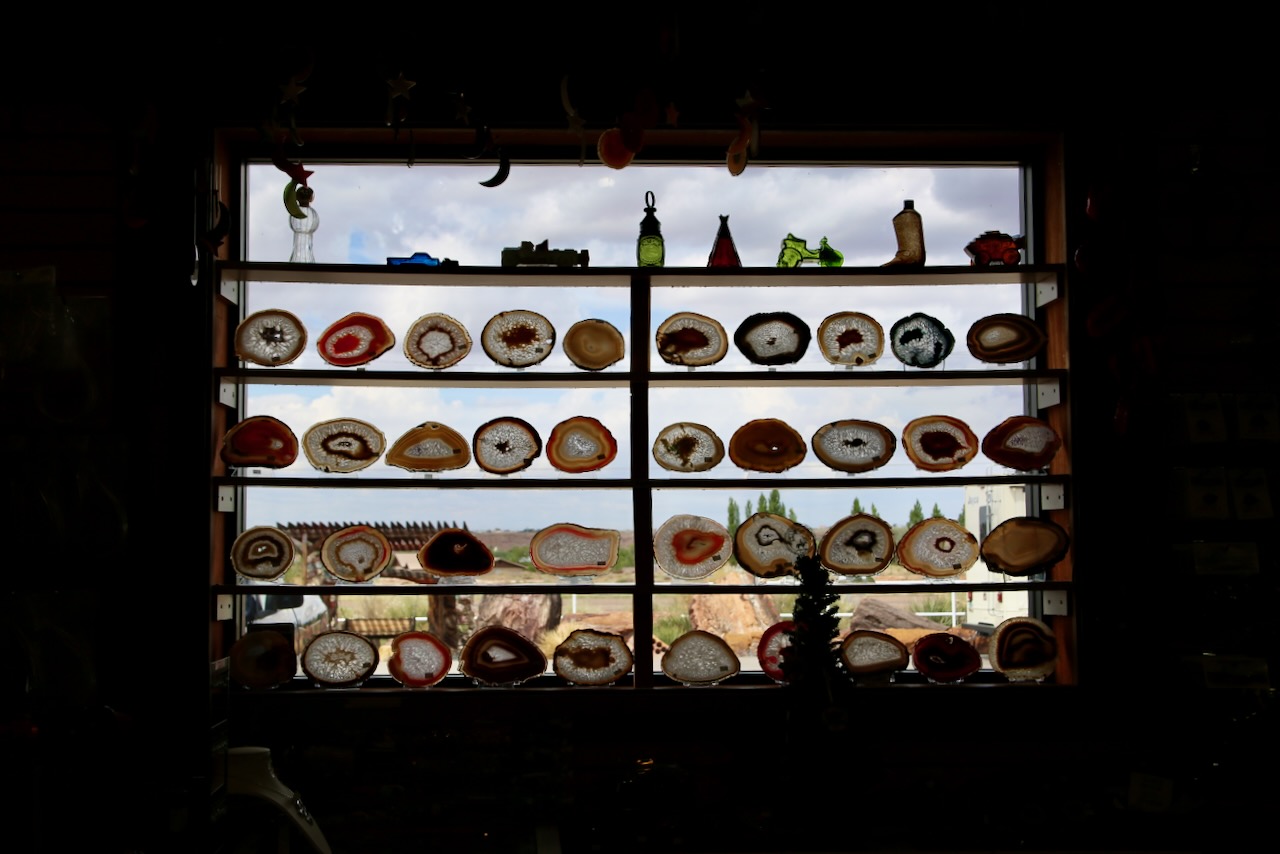 I enjoy looking at things I would never buy, partly a personality quirk and often times the prohibitive cost of someone’s time, so I stopped at the Painted Desert Indian Center to see what treasures were inside. There is mostly stones in all their beautiful forms polished into sun catchers and coffee tables. There are also t-shirts, windchimes, jewelry, woven blankets, and paintings among the display. This shop is conveniently located just ten minutes from the entrance of the Petrified Forest National Park, which is still beautiful on my fourth visit.