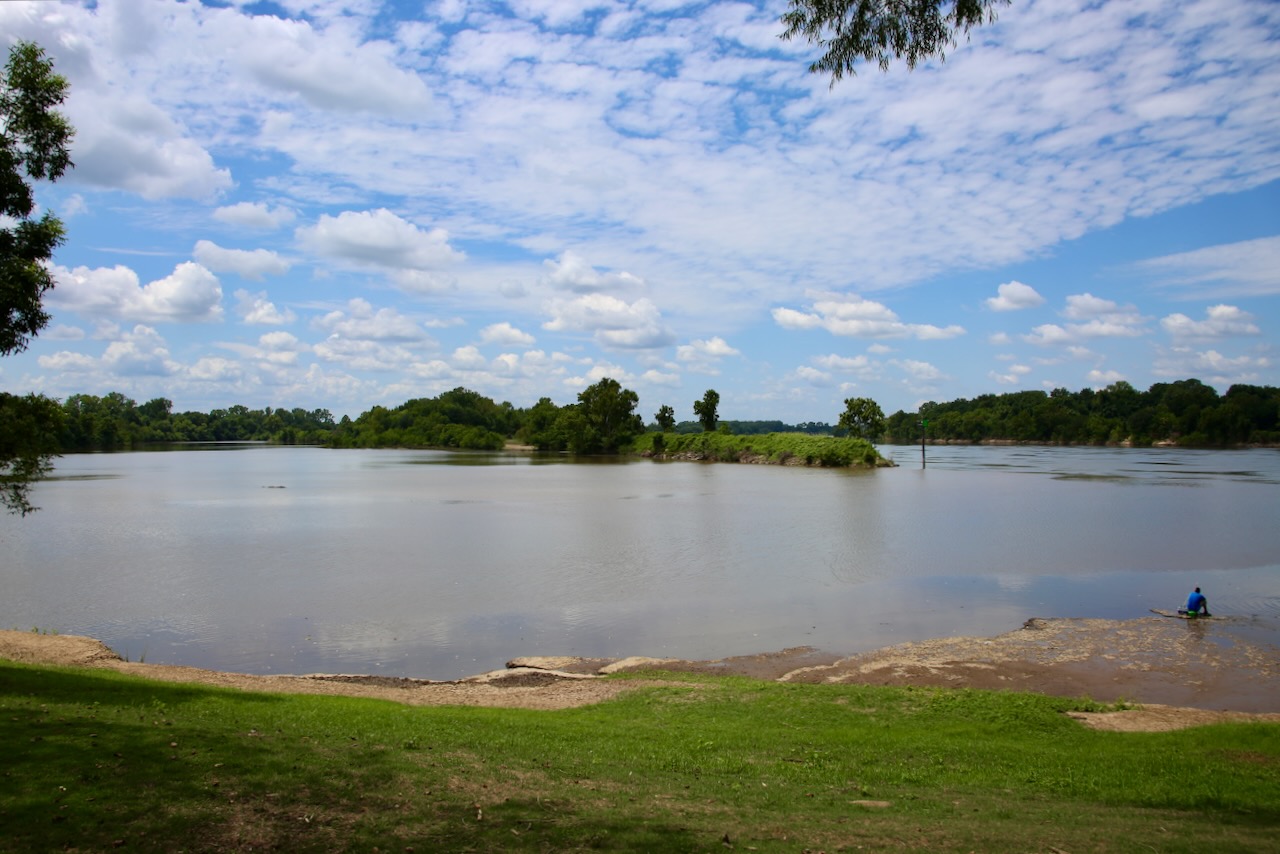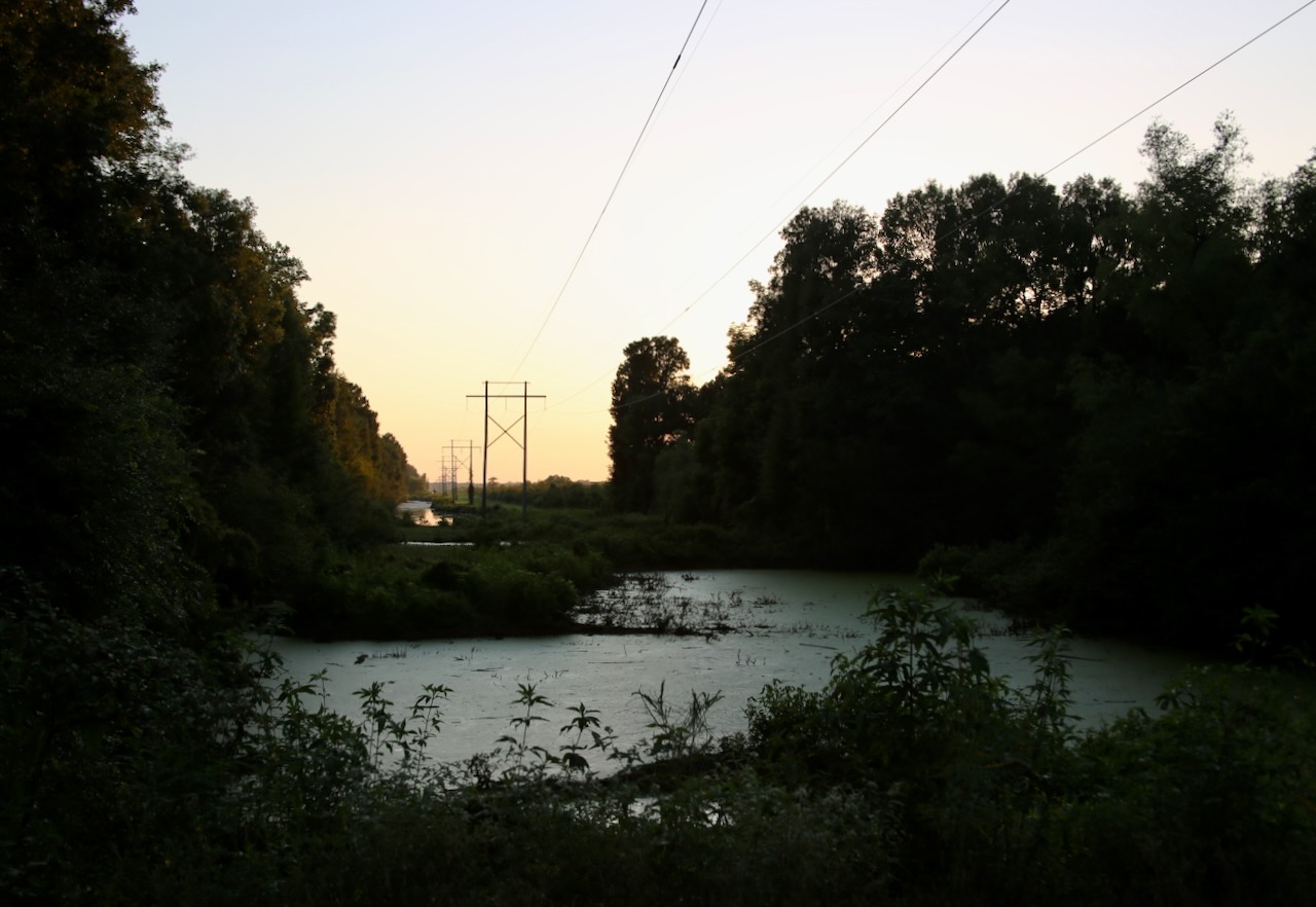 I was grateful to escape the situation without further interaction and drove straight through Little Rock and past the exit for the Camp Robinson State WMA, where I am going to camp. I turn onto the gravel road surrounded by swamp on both sides, which makes me wary of mosquitoes, and a striped horse fly lands on the car. I try the path to the right first, which takes me to a pond and over a three-mile-long bird trail, then go left and find designated camp areas along the river. This park passes under the highway, but I mostly hear the nighttime country bugs. I’m still waiting on the temperature to drop below 80°F so I can sleep, or nap, and carry on.