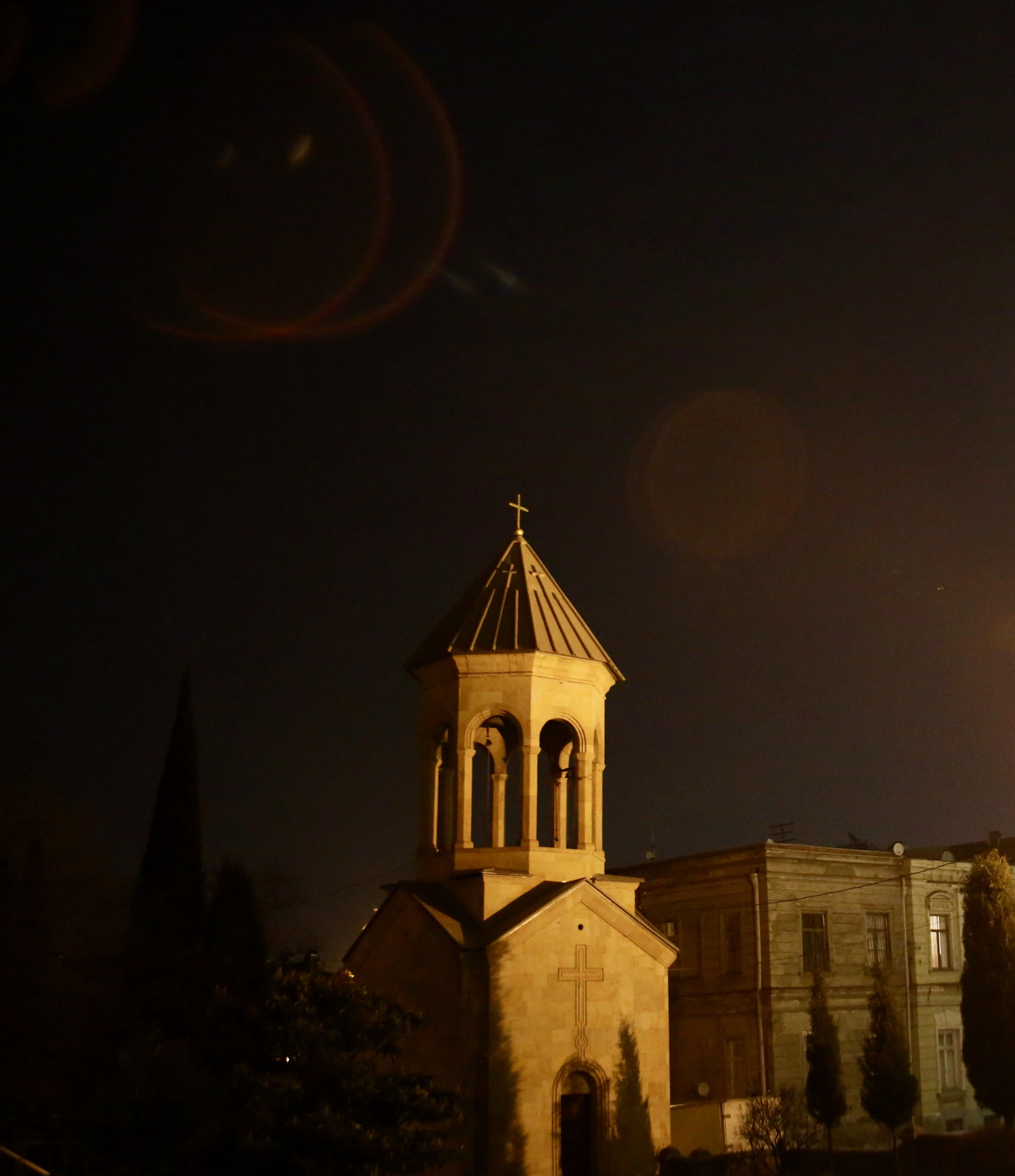 The Kashveti St. George Orthodox Church is beautiful inside and out. Women are covering their hair (except for one who looks like she threw a dish towel over her head) and men giving the sign of the cross upon exit. I put my coat hood on and go in. There is no place to sit and everyone is placing an 8-inch candle, thinner than a pen, to melt under the image displaying a lord, mother, or disciple of their choosing and allowing the wax to drop on the floor as the candle is placed on a tray of its peers.