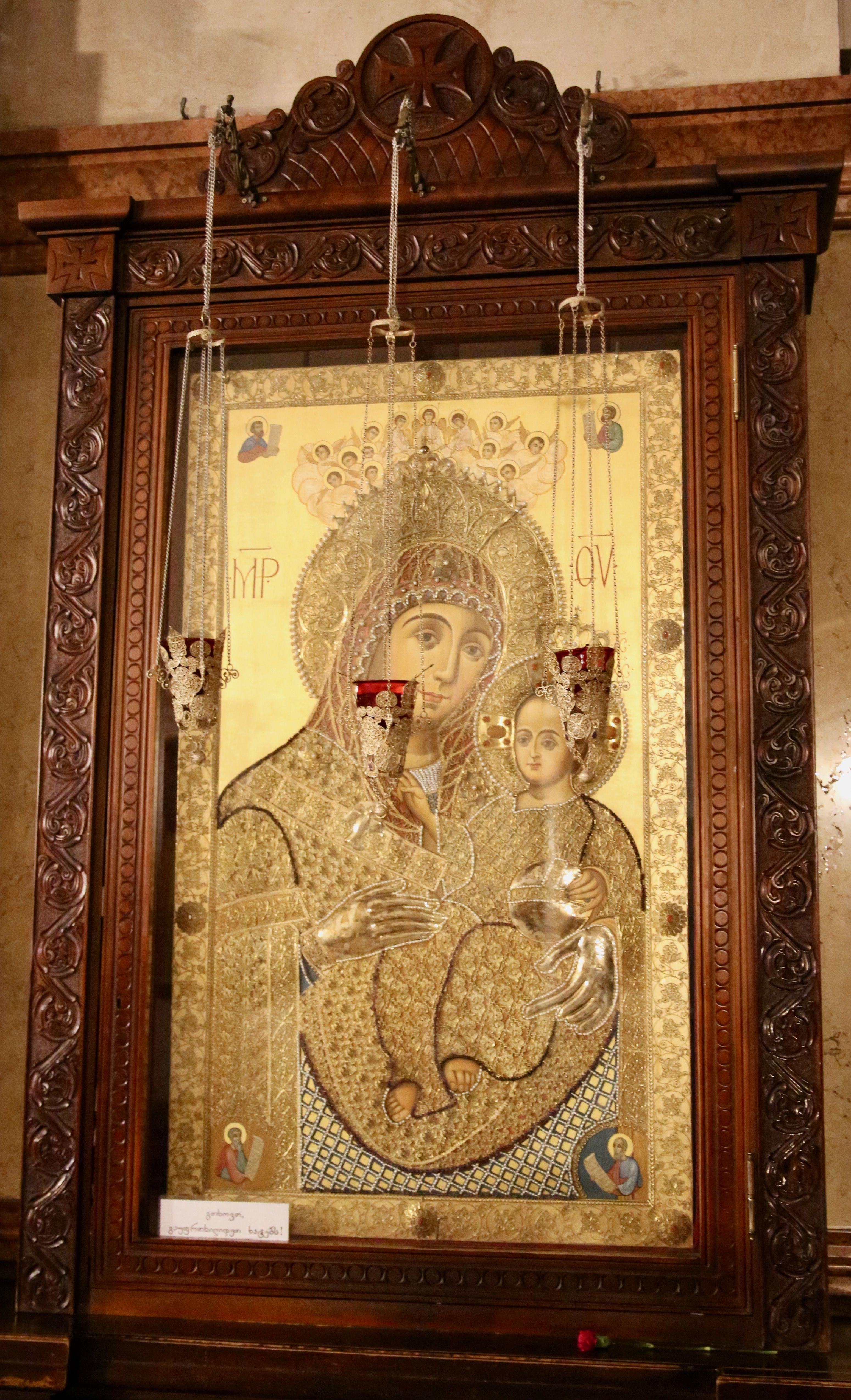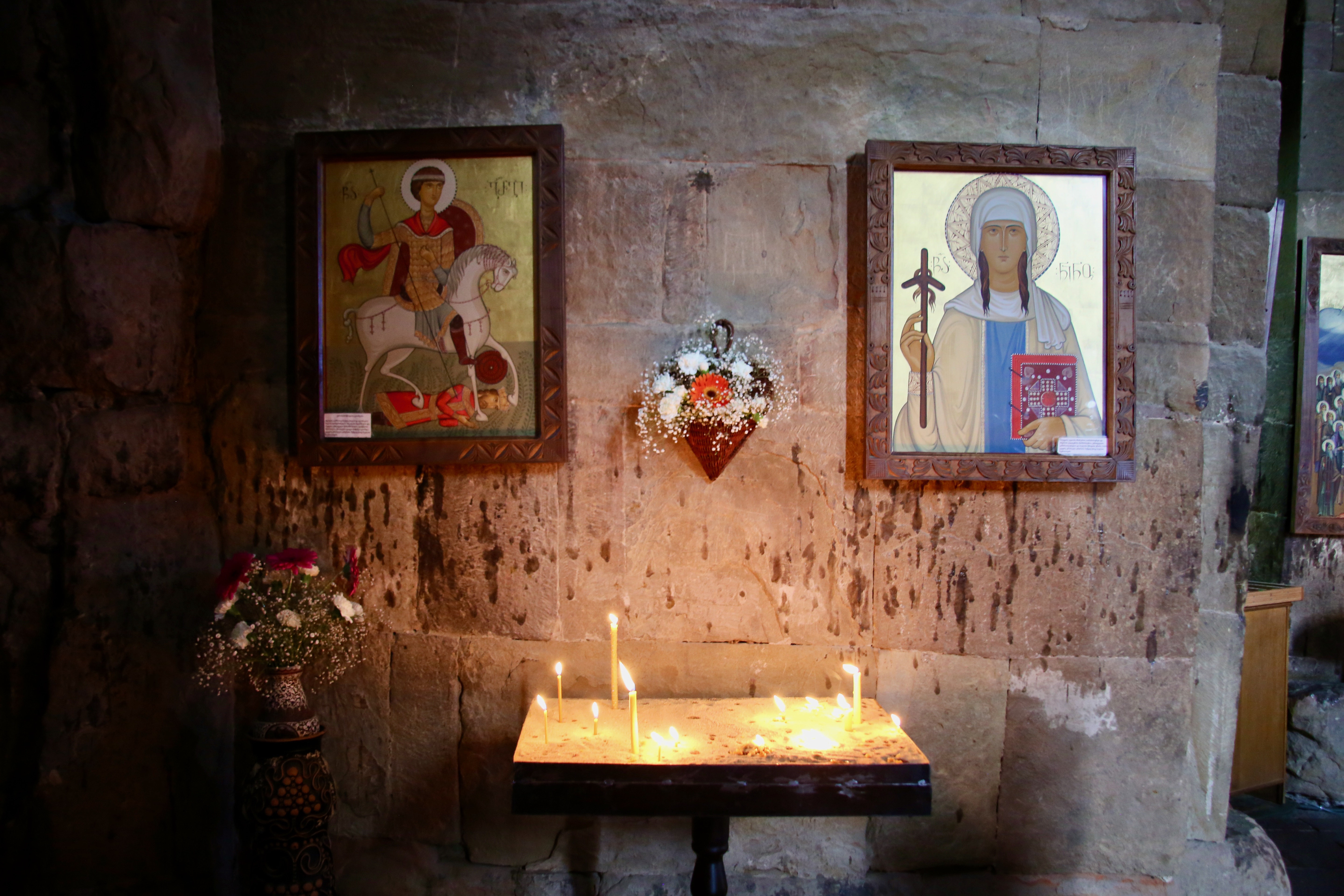 Up ahead is Saint Nino’s Makvlovani — which refers to the garden of spirituality under a blackberry bush with the blessing of the Mother of God — has stones in it that are curved on one side to go around a pipe and flat on the other. Makvlovani also refers to a smaller church (where a beheading and parties are painted within) that happens to be in front of the Samtavro Convent where I wasn’t allowed to take pictures. I admired all the jewels and gold in their protective kissing cases and especially the one that had clothes appearing on a body in a glass casket.