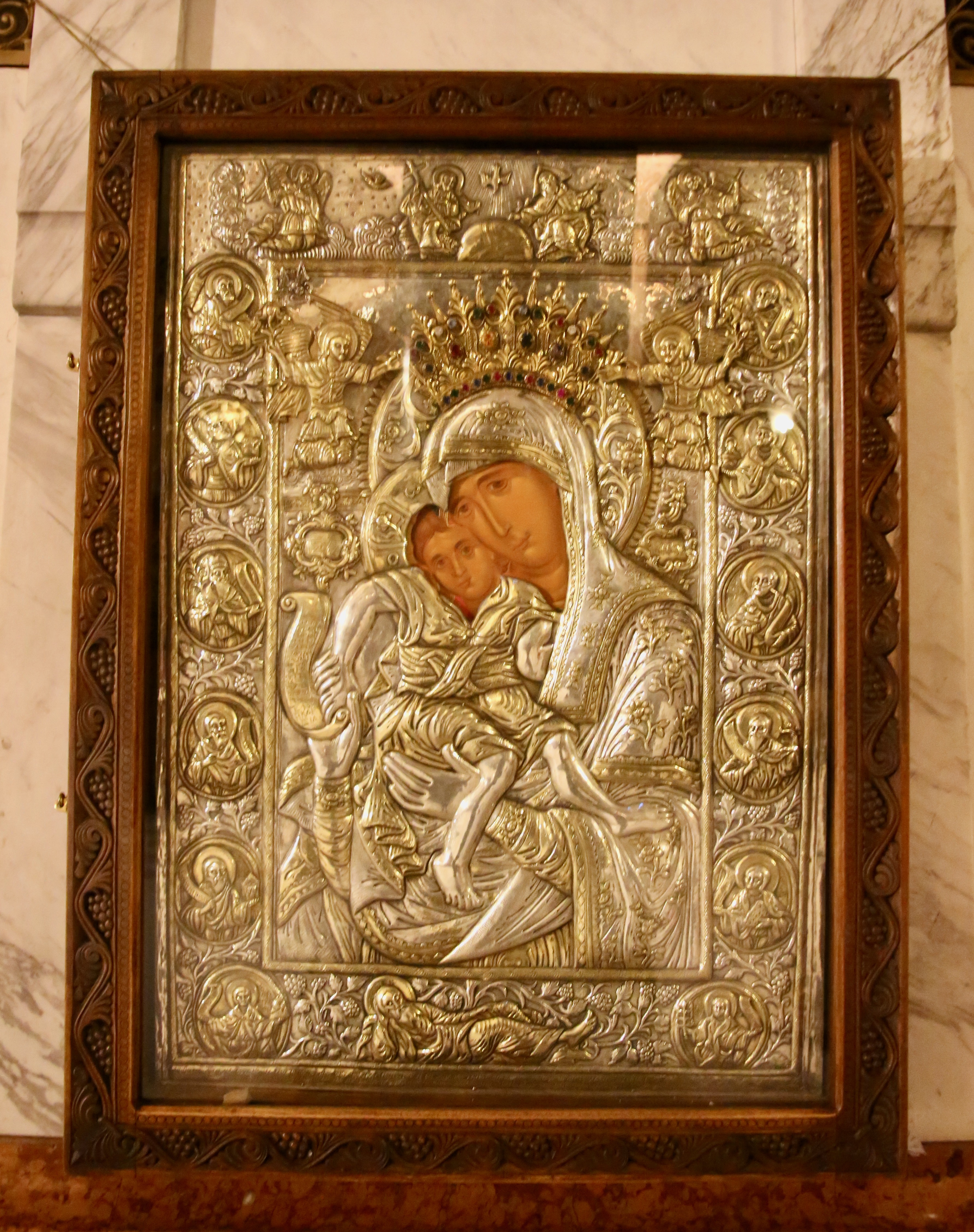The inside looks touched but clean, ancient but preserved, and has dark corners with plenty of natural light coming in to brighten the golden haloes on the walls and all the marbled grave markers on the floor. Young and old are awestruck at the design, deterioration, and dedication in preserving and continuing to use a part of history that struggled to keep peace in this setting while bloody battles were being fought to determine which religion, language, skin color, political belief, etc. would be in charge of the region for the next ruling period — from days to decades.