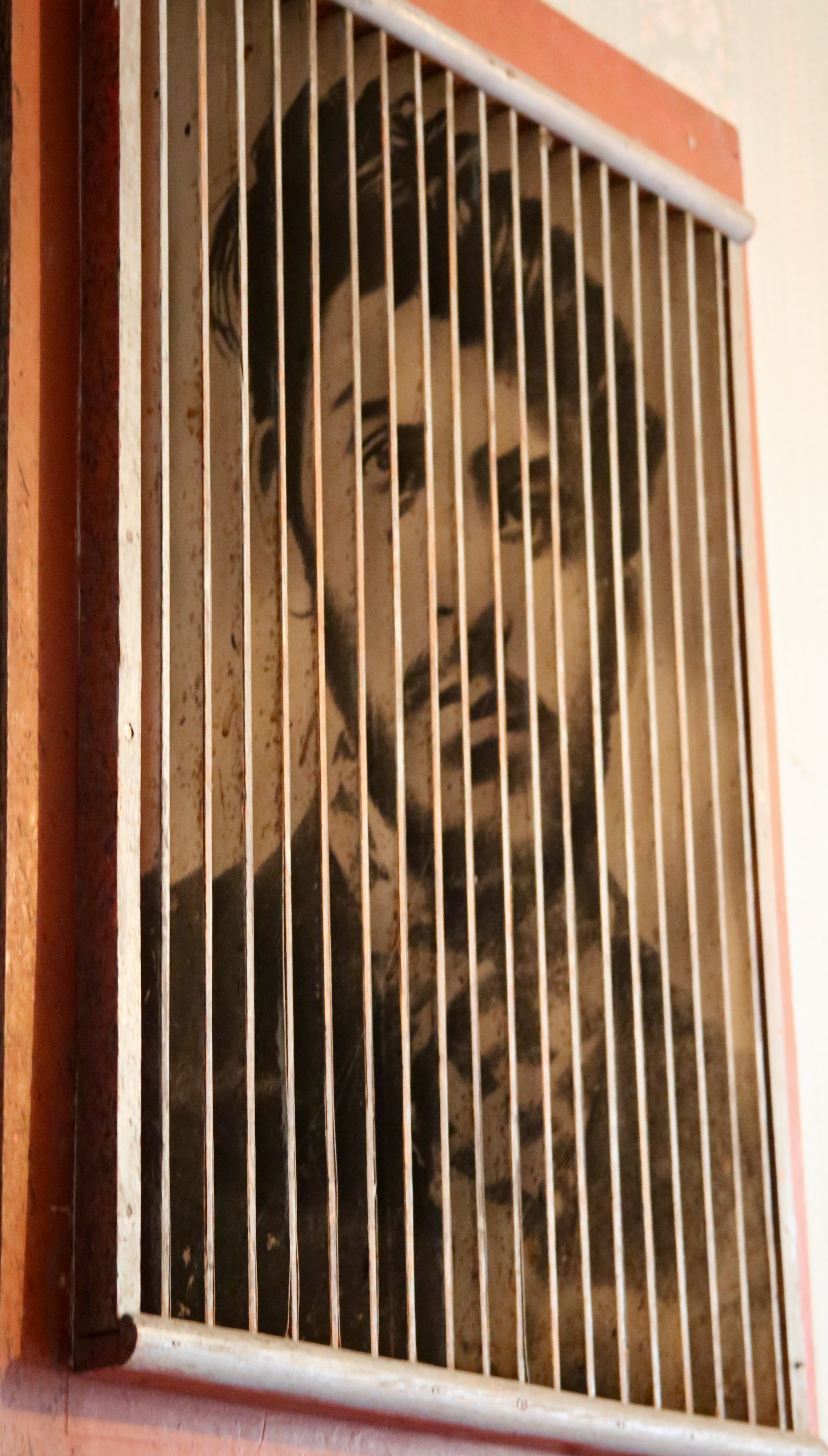 I parked by the curb of a garage located on the other side of the walkway from the street and watched a car pull up for basic services — tires, fluids, etc. I arrived at an old-looking school building around the corner but this one with hammer and sickle on the doors –meaning Stalin’s house should be nearby. Nevermind that I was 20 minutes early, the arrow said open to the left, so I proceeded to give myself a tour of the well shed, with a hole big enough for two men to hug each other, then down the brittle metal circular staircase to a dark room (lit with my phone) to show a typographic machine with a rusted hurricane lantern shell dangling above.