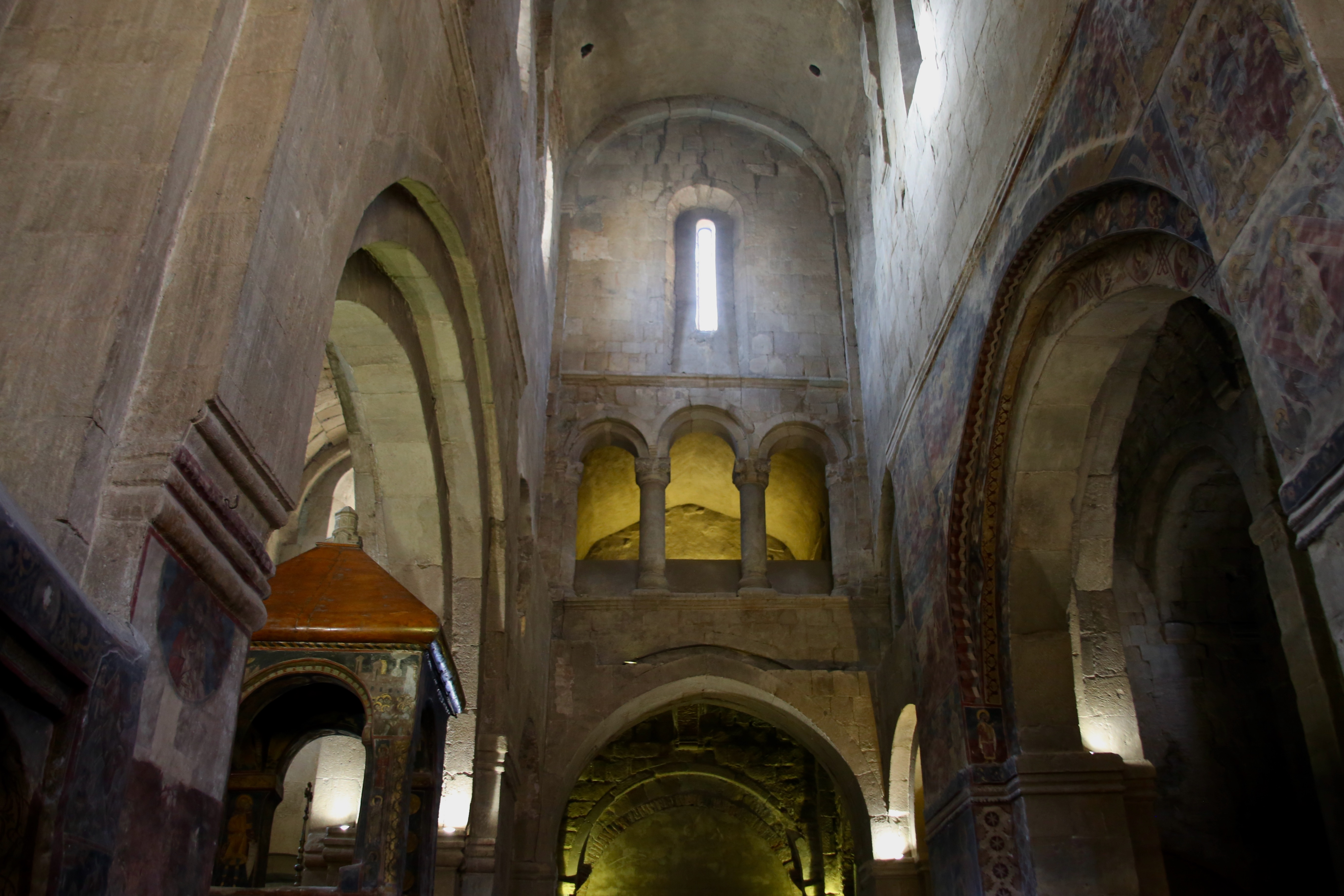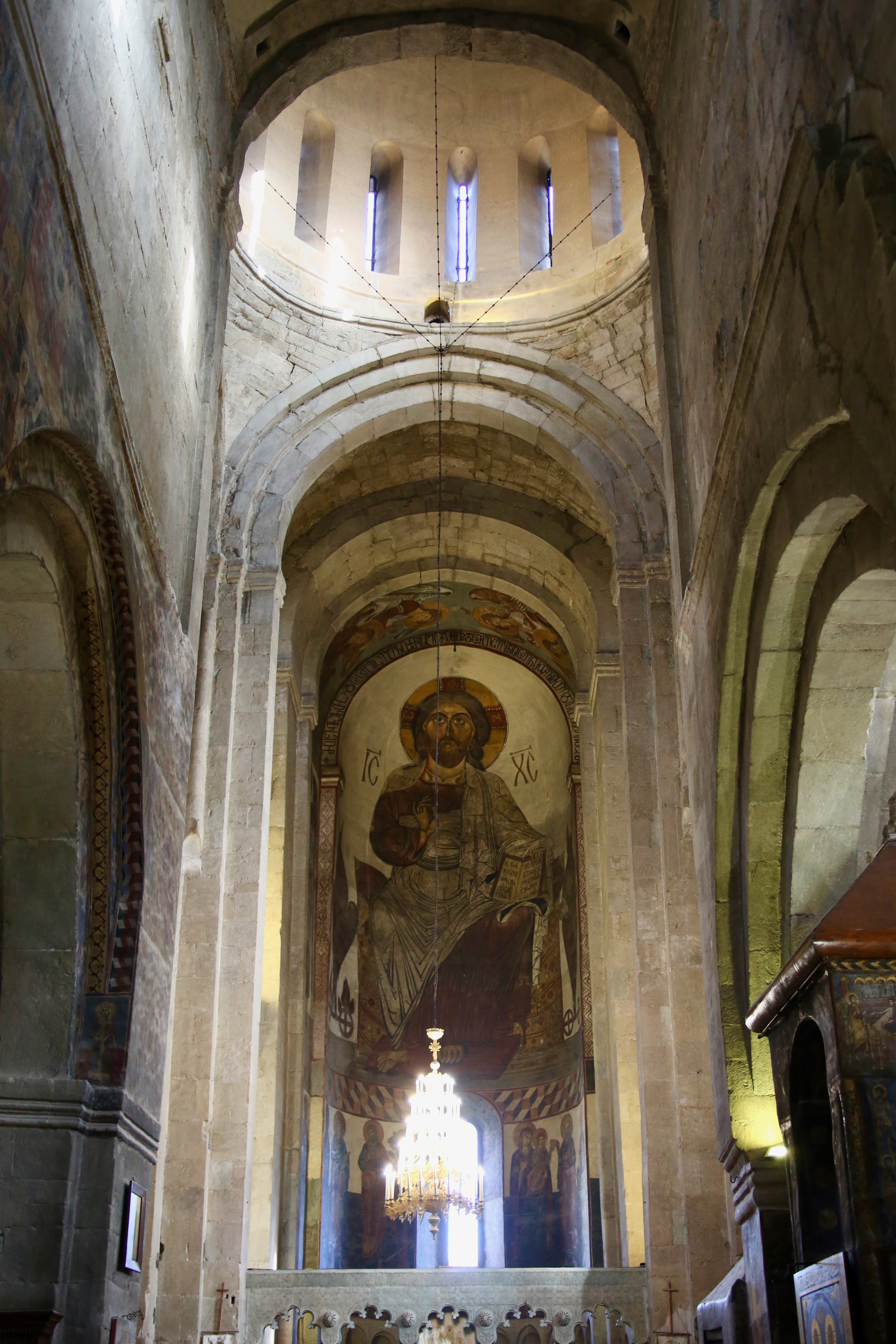 I wasn’t expecting the wind and was a bit hungry when I stepped out of the car but the food stalls are empty so I’ll have to wait. This church was built in the 6th century around the octagonal base of a large wooden cross that was erected in the 300s, hence its other name Church of Holly Cross, and was built in the tetraconch style to contain four apses, semicircular domes, with one in each direction but maintaining a squarish exterior. There were other structures built as well but the Caucasus mountains and the confluence of the Mtkvari and Aragvi rivers grew without human influence until the 1920s.