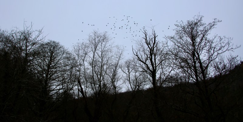Further down the road and I have a white horse sighting, which for Christians means just as much death as a black cat. It’s a good thing that this stallion also stands for freedom and the balance of wisdom and power (as all animals have during their short lives in their realm). I also see another beautiful waterfall and then a flock of birds against a grey-blue sky above leafless trees but the only thing I read into it is, “I’m having a fantastic day and it’s only just beginning.”