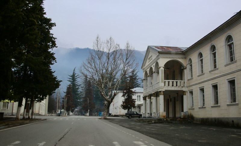 I arrive in Tskaltubo and though some factories look abandoned I’ve seen homes that look the same way with fresh laundry on the line. Georgia sets the standard of not judging a book, person, or country by their cover, clothes, or architectural appearance. The only movement I see is a taxi driver in a roundabout that seems to be having a smoke while standing outside the car, even though smoking wasn’t banned in taxis, houses, psychiatric clinics, penitentiaries, or casinos when it was restricted from schools, hospitals, libraries, etc in May 2018.