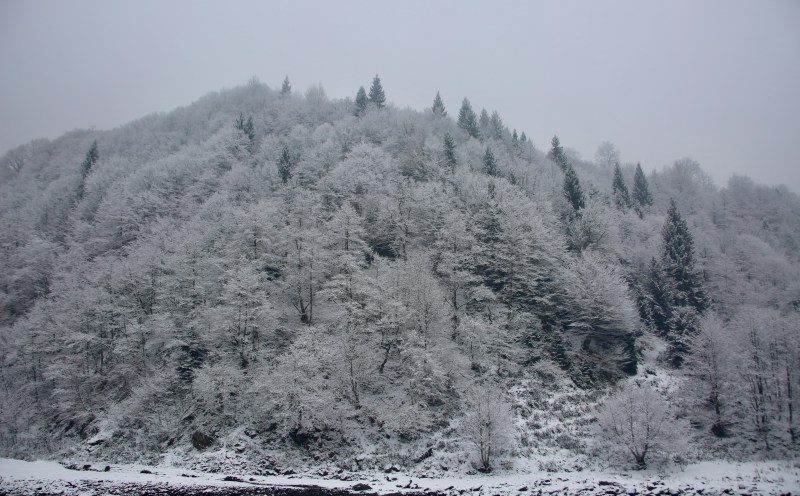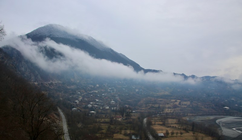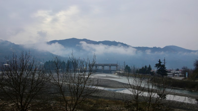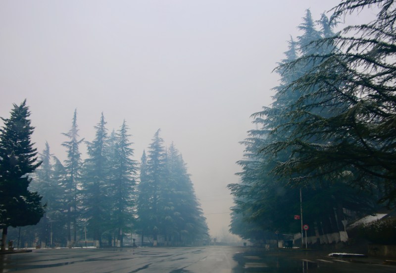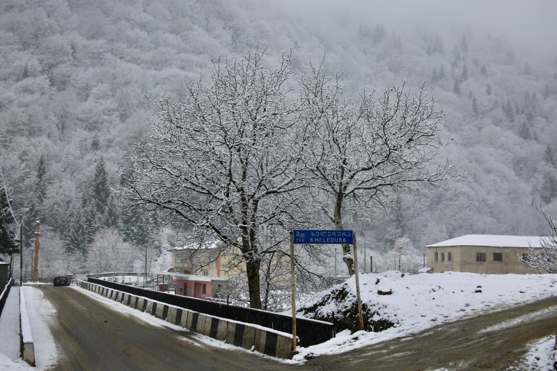 A woman had to unlock the giant door and let me out downstairs into the back courtyard. I walked around to the front and found a diesel station on the corner where the guy charged me 0.11 tetri more than what the pump read but I wasn’t going to argue over 3.5 cents. I drove away from Martvili with the sky varying shades of blue thinking the sun was just twenty minutes away from shining, but I had forgotten that I was in Georgia, in the winter, and was heading up into the snowy mountains.