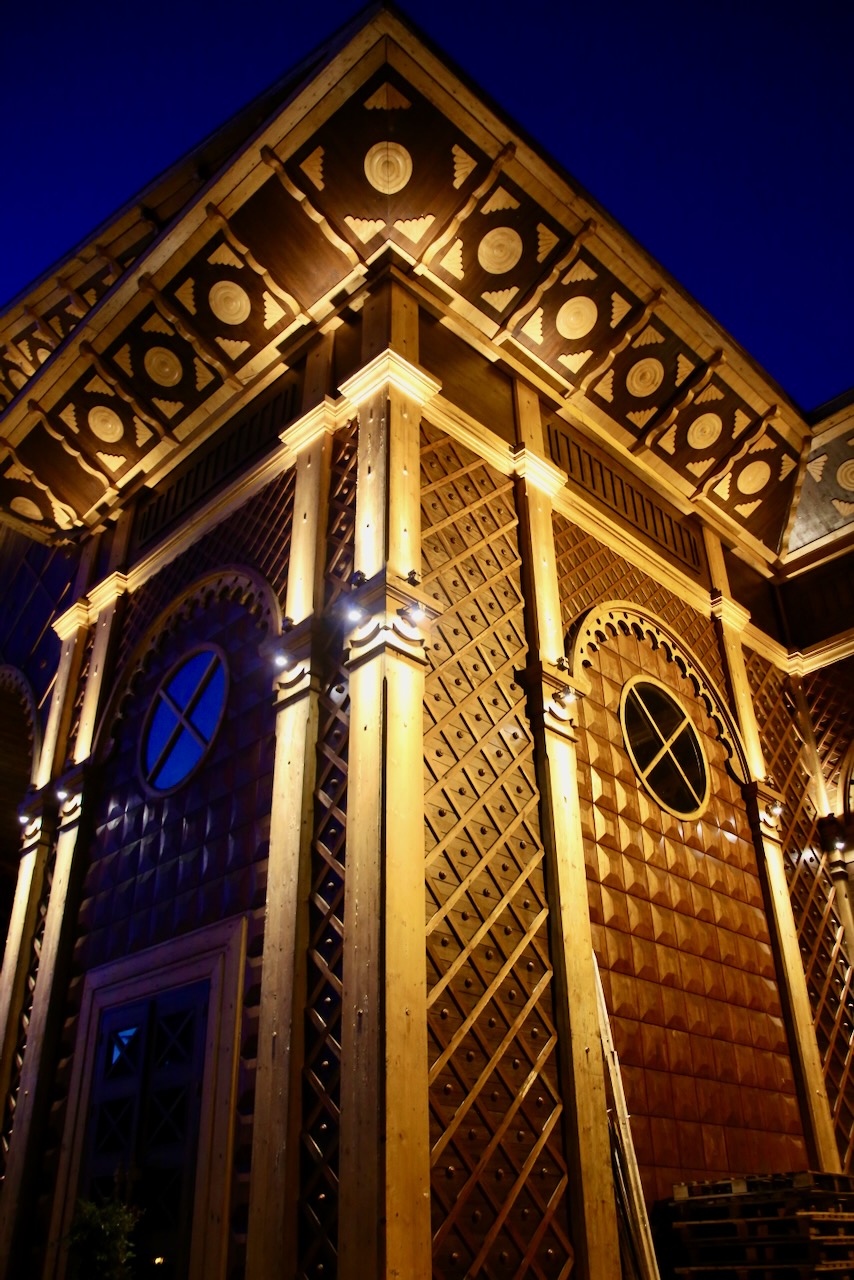 I leave Hotel N 16 under the cover of darkness but with the glow of yellow street lights to guide me to the lit-up Batumi Piazza. I always enjoy exploring a city before the day starts, just me, the facade lights, and the guy I thought had turned around to follow me. It’s a good thing I feel safe here and continue walking to see murals, shop windows, and a dog posing on the sidewalk. I heard a knock on the guard shack (not sure which one), but I went to the door, and it was one guy waking his friend.