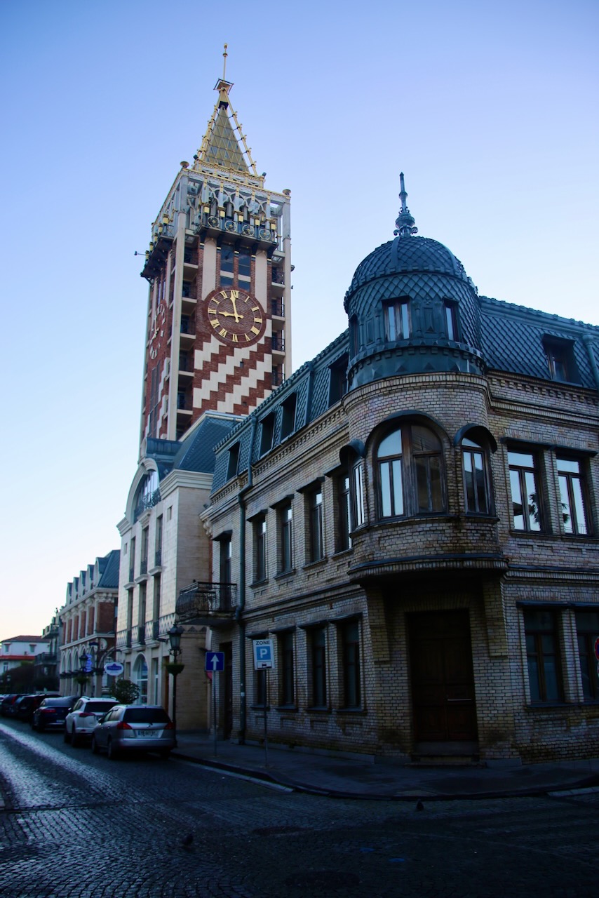 The architecture is very pleasing to look at. There are many words to describe eye-catching. I pass a telephone box, a gift from the Admiral Hotel to the city with the support of the British Embassy. I should’ve attempted to use it, having used payphones in my childhood, but I wasn’t sure who I could call. There is a large astronomical clock and a sign below it with descriptions of moon phases and solar time in Georgian, English, Russian, and Turkish.