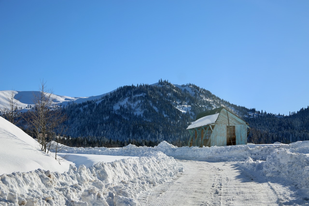 I approach the Goderdzi Ski Resort and am taken aback by the crowd as this is the most cars and people I’ve seen since leaving Tbilisi. I was unaware at this point of what awaited me, even though there was a sign posted about 150 km back that said the pass was closed. I thought that if I just kept moving, I wouldn’t end up stuck in the snow like the other cars that started to surround me. A group of guys offered to help get me turned around, the same group that I unknowingly took a picture of half an hour ago pushing their van out of the snow.