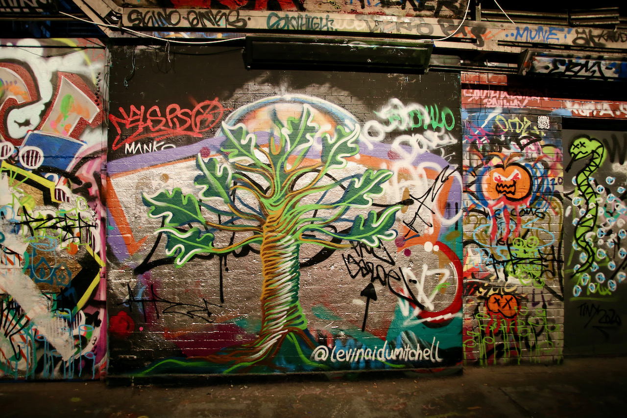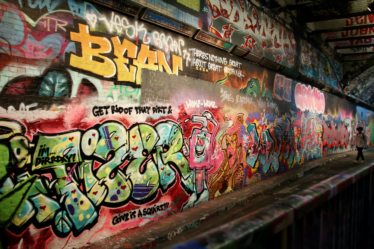 After an afternoon along the river and amongst shop windows, I’ll ride to Waterloo to meet Radu for dinner as I still wait for my room to be cleaned. He notices that I like to take pictures, so we walk through Lower Marsh to The Vaults, a tunnel full of graffiti, till we see the London Eye lit up pink.