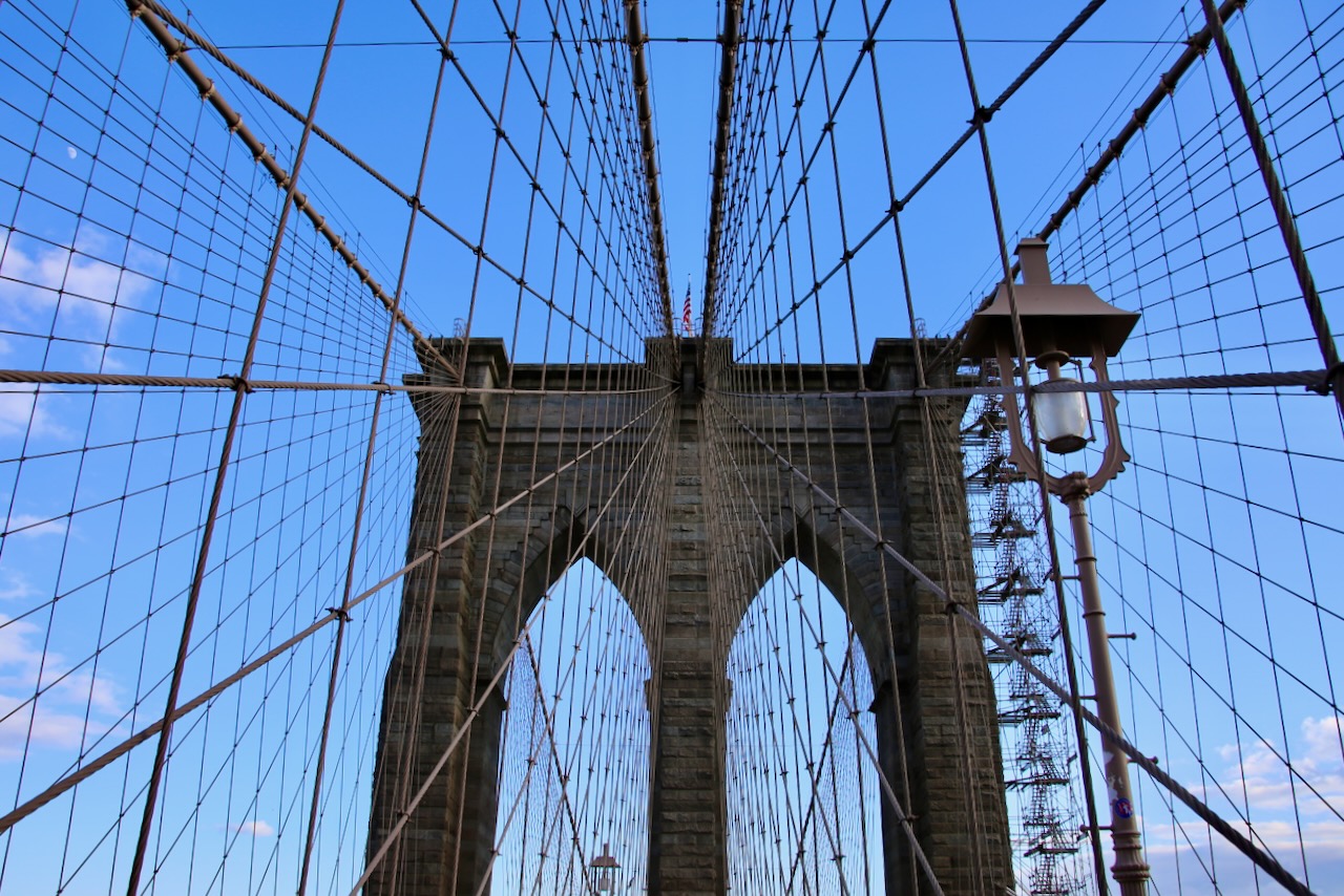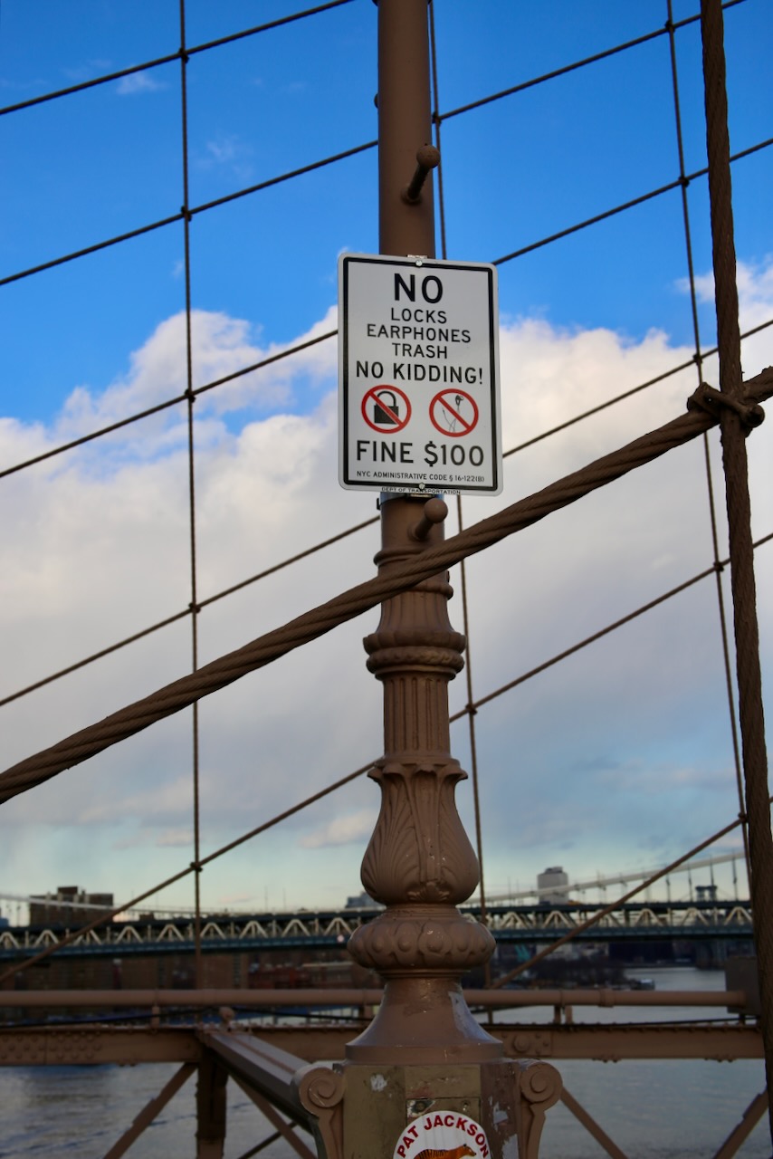To get a closer view of some of these buildings, we took the East River ferry to Manhattan and returned hours later via the Brooklyn Bridge, on foot. The bridge was opened in 1883 after 14 years of construction. Just a week after opening, with over 150,000 pedestrians (not Barnum’s 21 elephants), a stampede broke out and twelve people were trampled to death. The cables are made of 19 strands that consist of 278 spun wires. These are bolted to eyebars that are encased in a 23-ton anchor plate.