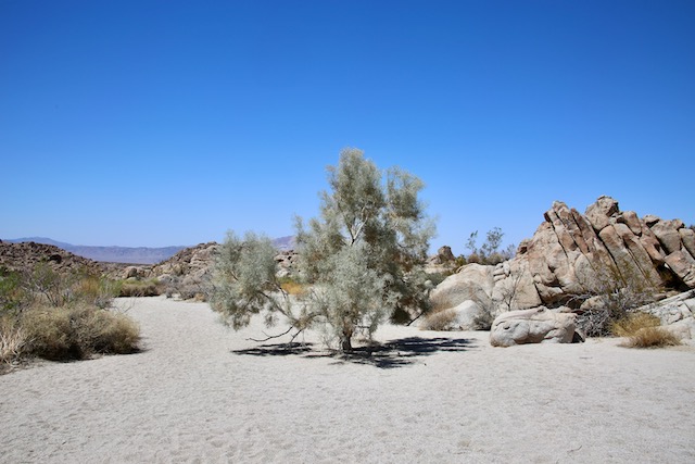 Caleb grabs a map, I put a stamp in it, and we’re off to Porcupine Wash to explore roughly 2.5 miles of the Colorado Desert in the heat of the day, which at 100*F isn’t anything we can’t handle in our shorts-clad legs and sunscreen-covered faces. This is a wilderness backpacking area and we realize that at our turn around point when we don’t know which way to go, except back the way we came, and our water is at half remaining. The desert is full of subtle colors and signs of life and we’re lucky enough to spot a couple of Zebratail lizards scurrying across the hot sand; though they prefer to keep their camouflaged distance and I didn’t bring my zoom lens.