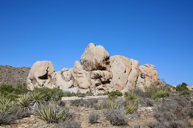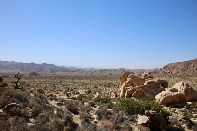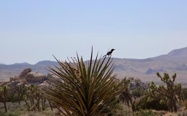 We’ve traveled 36 miles north into the park before the split — one to the west entrance and the other to the north entrance. We’ll go right and park at Ryan Mountain. There are more trees and boulders on this side of the drive and a beautiful scrub jay watching us from a Mojave yucca and a Black-throated sparrow eyeing us from the stone steps as we ascend half the trail. We’re not worried about finishing before sunset as much as we realize we’re down to 40oz of water and Caleb still has to work in the morning. We’re roughly three hours from home without interruption and we already know we’ll be stopping at Twentynine Palms Marine base, or MCAGCC, to refill the car with gas.