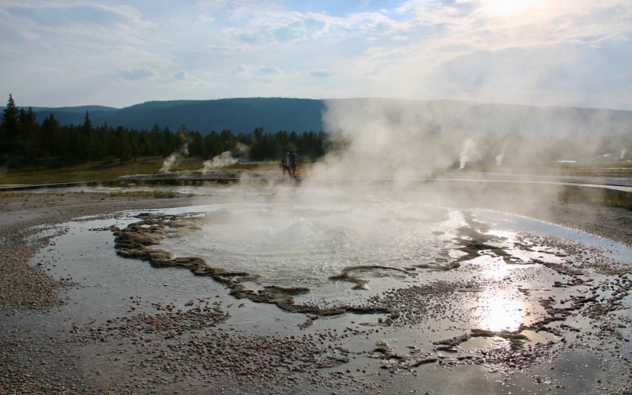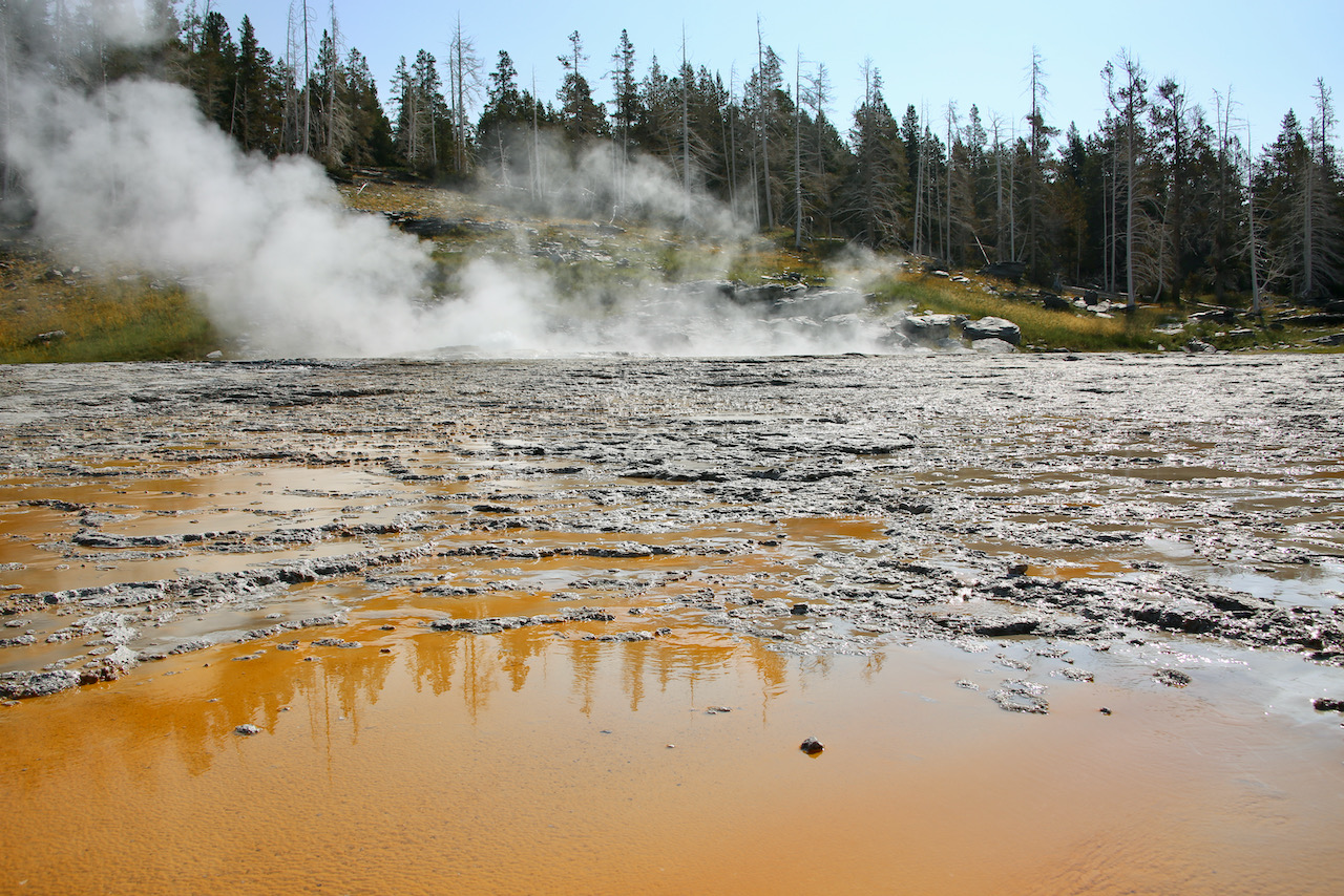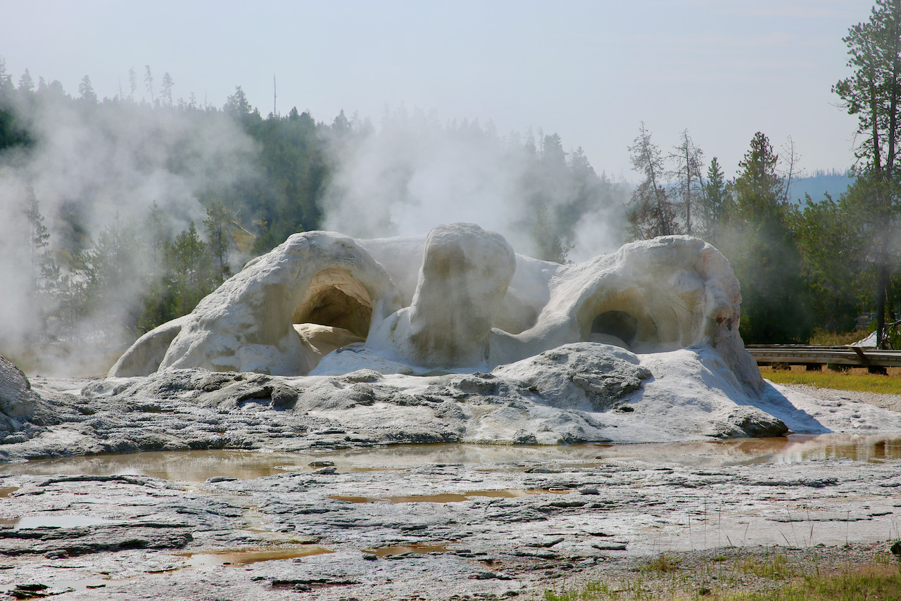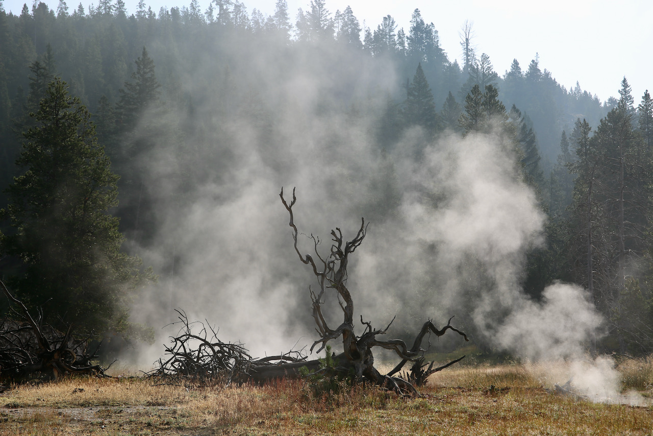 Dad stays inside to write, thinking it’s overcast, so I’ll venture outside to the Old Faithful Geyser Loop Trail for over half an hour taking in the soft growing sun, the trickling water, and the rising steam. I’ll return to find Dad still typing away but eager to go as he sees the sun coming in the window.