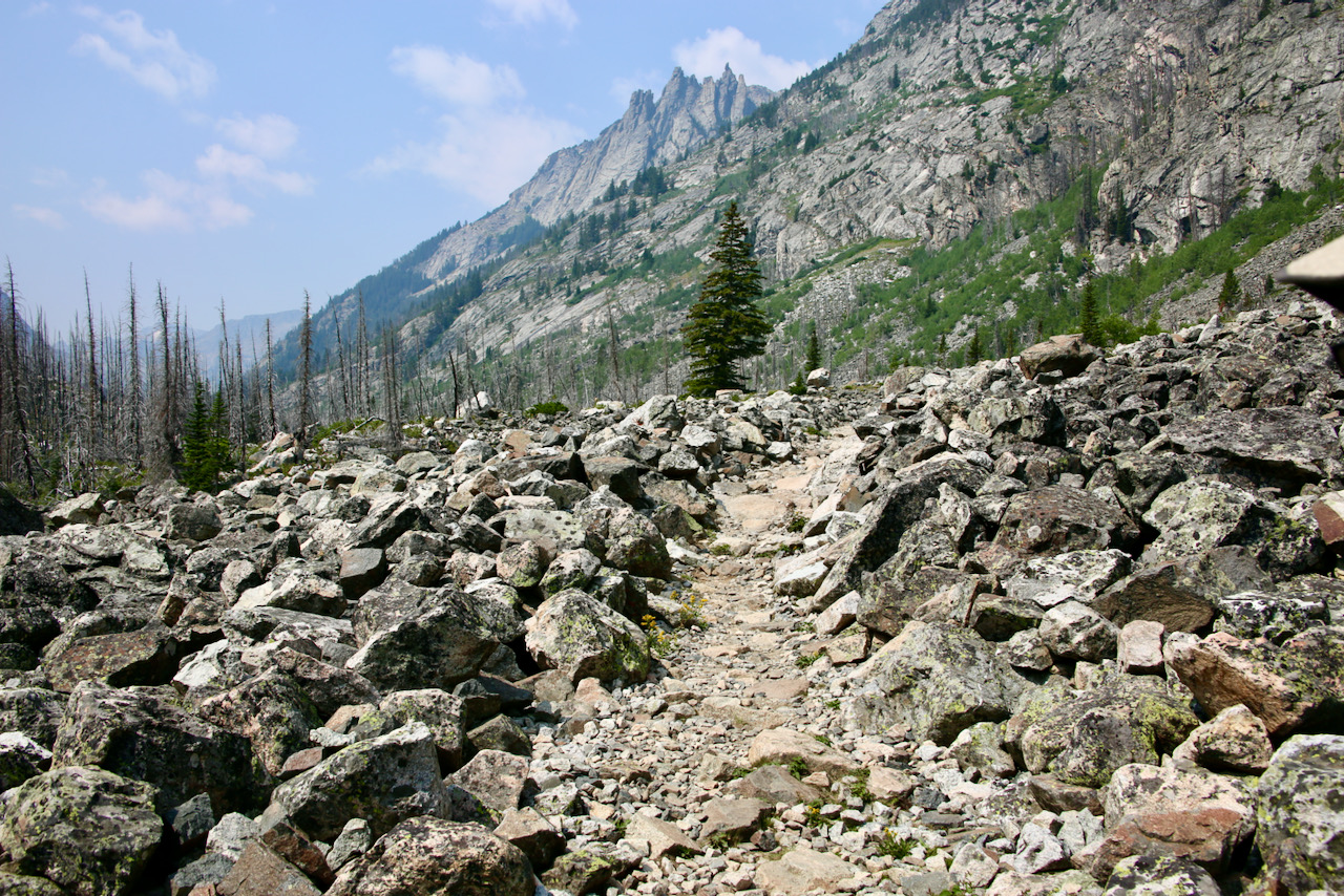 We pass the Kent family from Idaho, all 14 in total, with kids who have great trail etiquette – they’re not loud and moved to the side as they announced us to the rest of their group. We’ll stop to talk with Amelia and David, parents who dropped their daughter off at a nearby one-week rock climbing camp after driving over from Ohio. David lived in Buffalo for seven years after college and asks if Dad has family there because of his last name; he was born there.