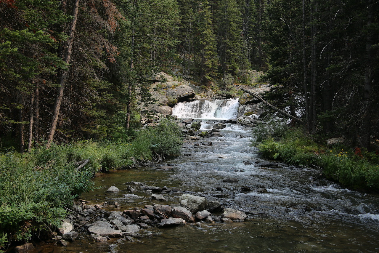 I’ll choose to eat the lobby buffet breakfast, out of wrappers, while sitting on the bed and letting Dad write. We’re out of the hotel at 830am and it will take us two hours before we’re signing into the West Fork Rock Creek Trailhead. That time is spent driving slow on 13 miles, part dirt road to avoid throwing dust, unlike the trucks passing us, and so we can see yellow-bellied marmots and take their pictures as they pose on the roadside.