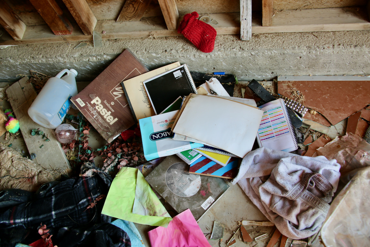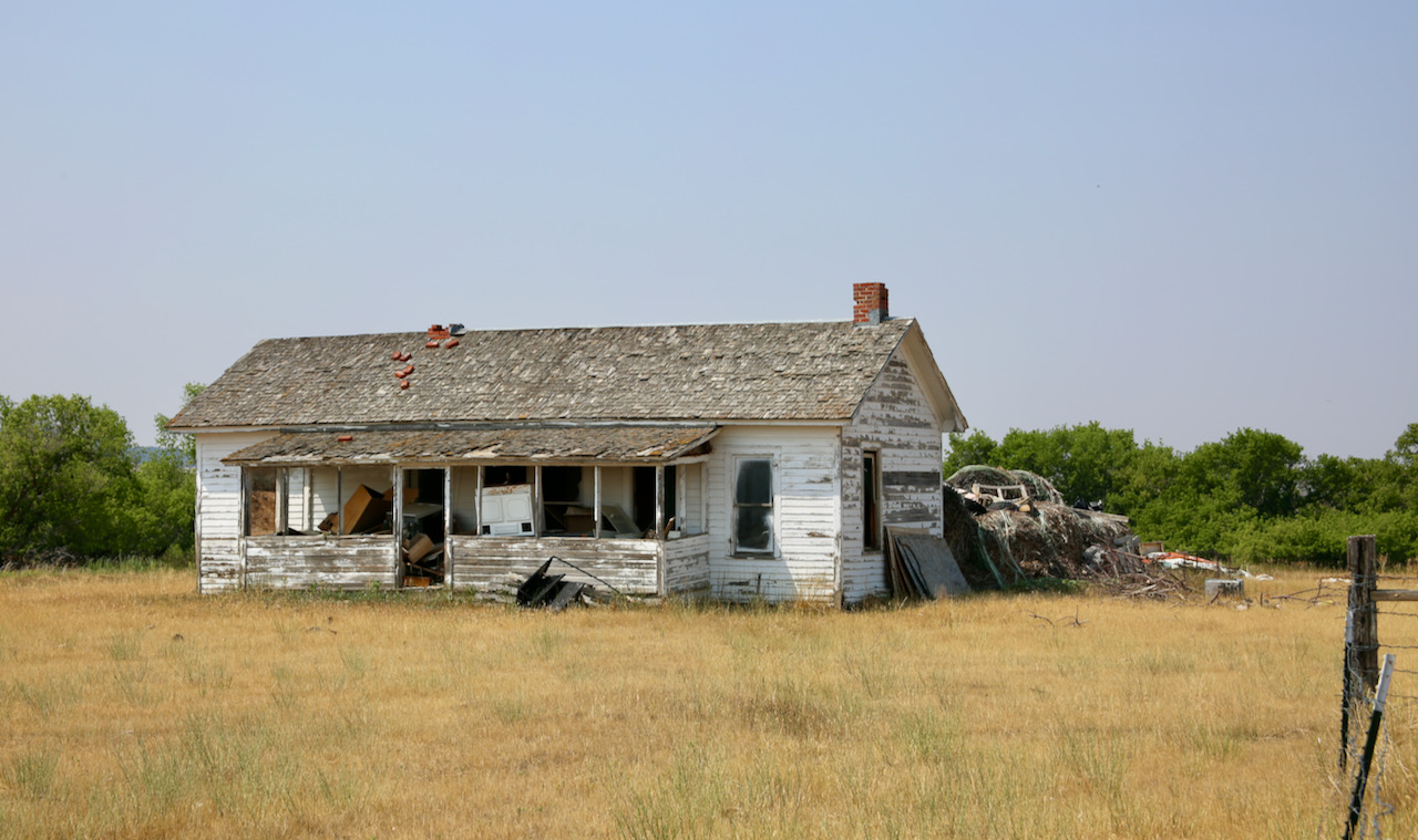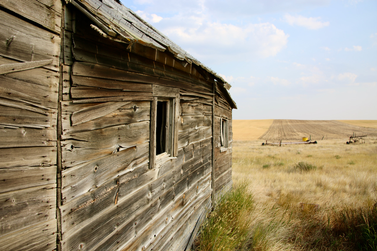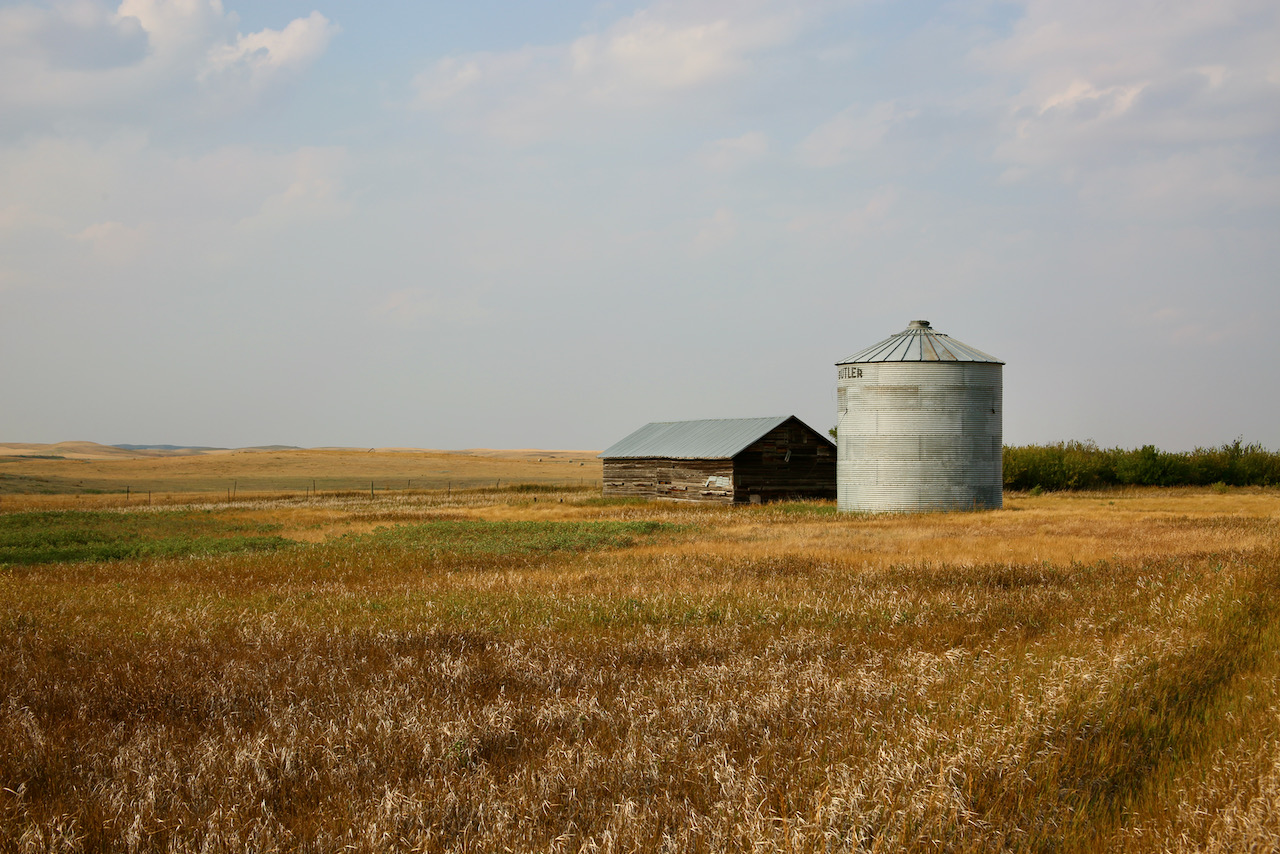 Found a barn at one-third capacity of barley next to a cute (from the outside) house that was falling apart inside. I’d have walked in but the doors are blocked with debris so I grab a long board and shove myself half in the window in an attempt to get a pan off the antique stove for Dad. I get the pan halfway across the stovetop when it rolls to the floor, where it shall probably remain for another 60 years.