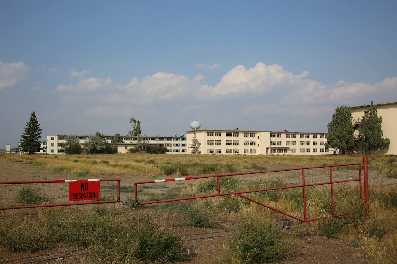 We see a couple coming out of a neighboring house with the same curiosity as us about the military housing for the old Air Force base in St Marie. We’ll explore a few more as we drive around before continuing on to rolling hills covered in beautiful yellow, green, brown, and white grasses. The sun is in the clouds, the pronghorn in the field, and the hawk on the fence post (the one we can’t capture on camera).