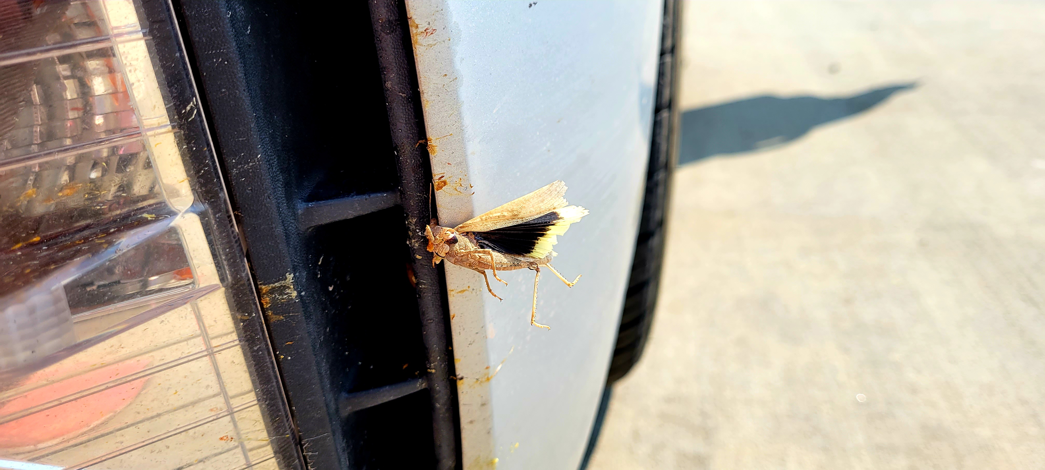 We roll the windows down to let the a/c defrost and Dad reminds me that there’s no wiper fluid either, to help tame the mass slaughter of grasshoppers taking place on the windshield. I don’t remember being taught to have an abundant supply of Clorox wipes in your vehicle over other matters that should be on a safety checklist, but I also was never in an official driver safety course; which is why I still struggle to parallel park.