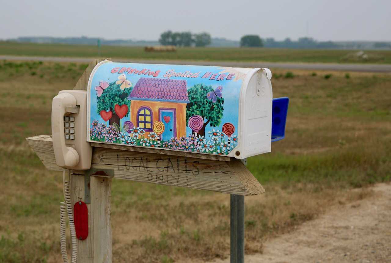 We stop in Redstone to admire the abandoned homes, except for the new helmets and keys in the fridge for the Harley. A guy drives by and tells us that for 99 years this town was a big deal for farming; it’s mostly empty now. Next stop, Plentywood for gas and Dad’s first time using a truck windshield squeegee, about three times the length of the car ones, to get the bug guts out of view as they continue to accumulate on the front of the car.