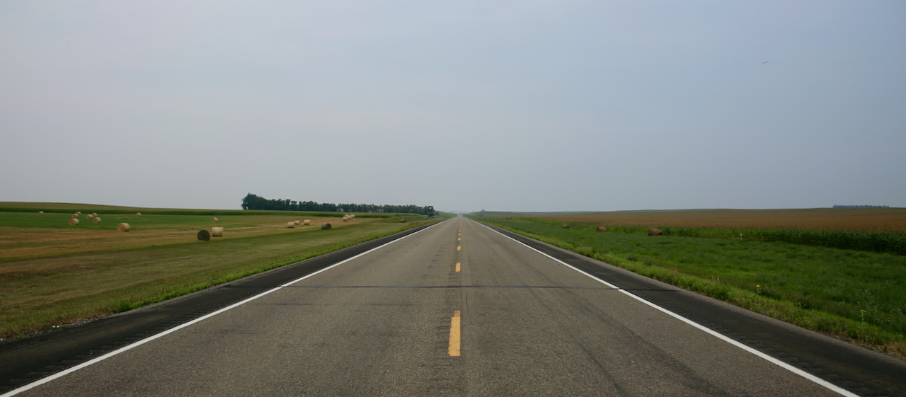 We arrive at the Renville Corner convenience store intersection where the 5 E meets the 83 S and debate taking the one-hour minimum detour to start at mile 0 (if there’s even a marker) and decide that it will give us a reason to return. This decision in no way limits the amount of grasshoppers that we will encounter on the windshield, bumper, tires, and road – so many little crunching noises under the wheels and our feet.