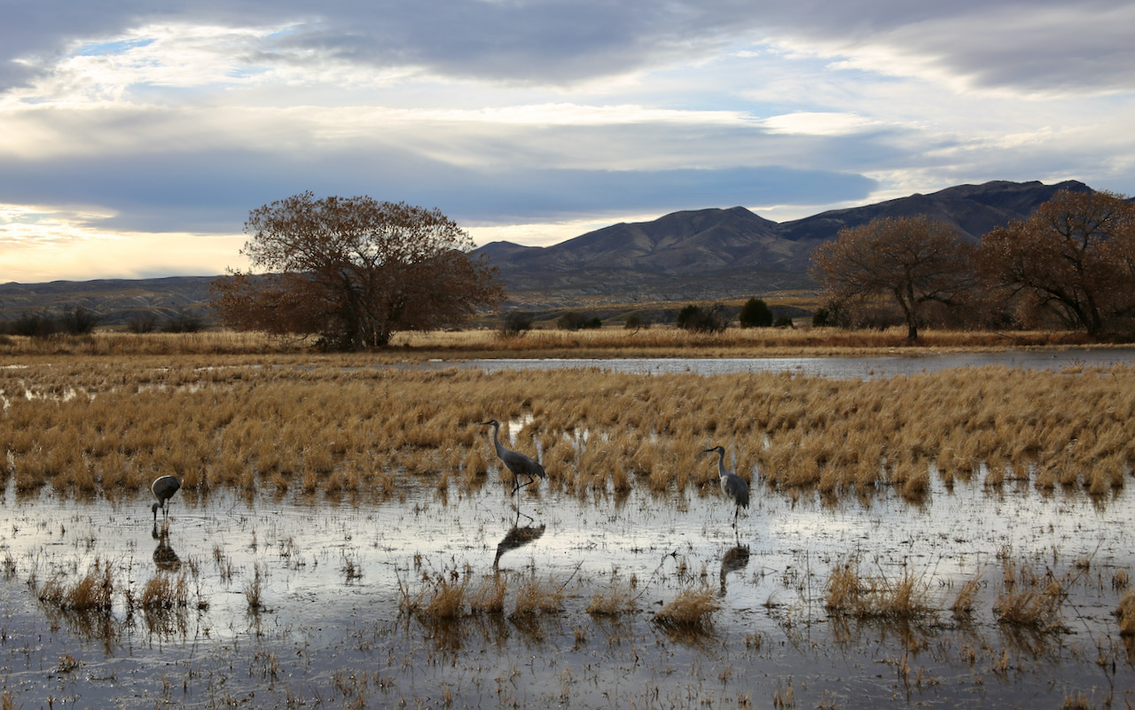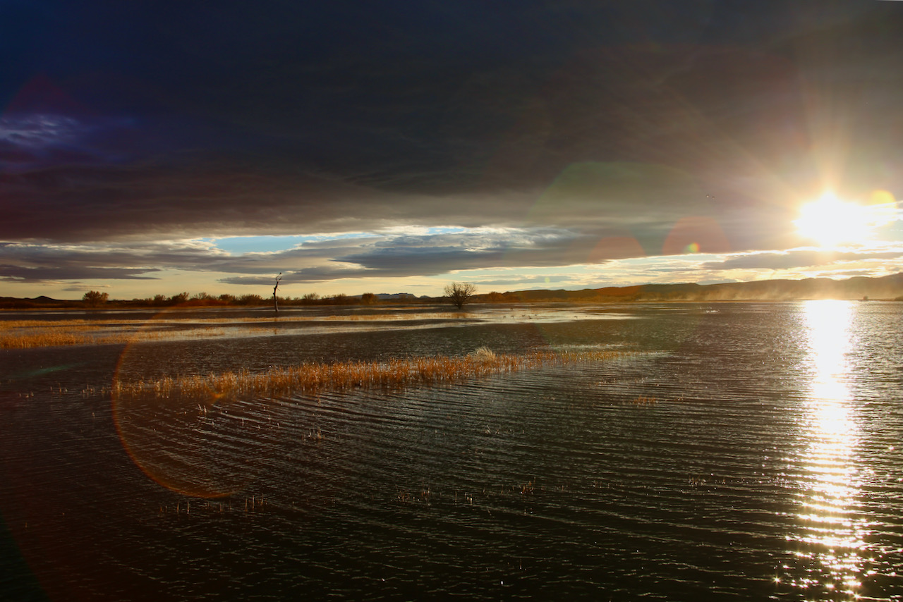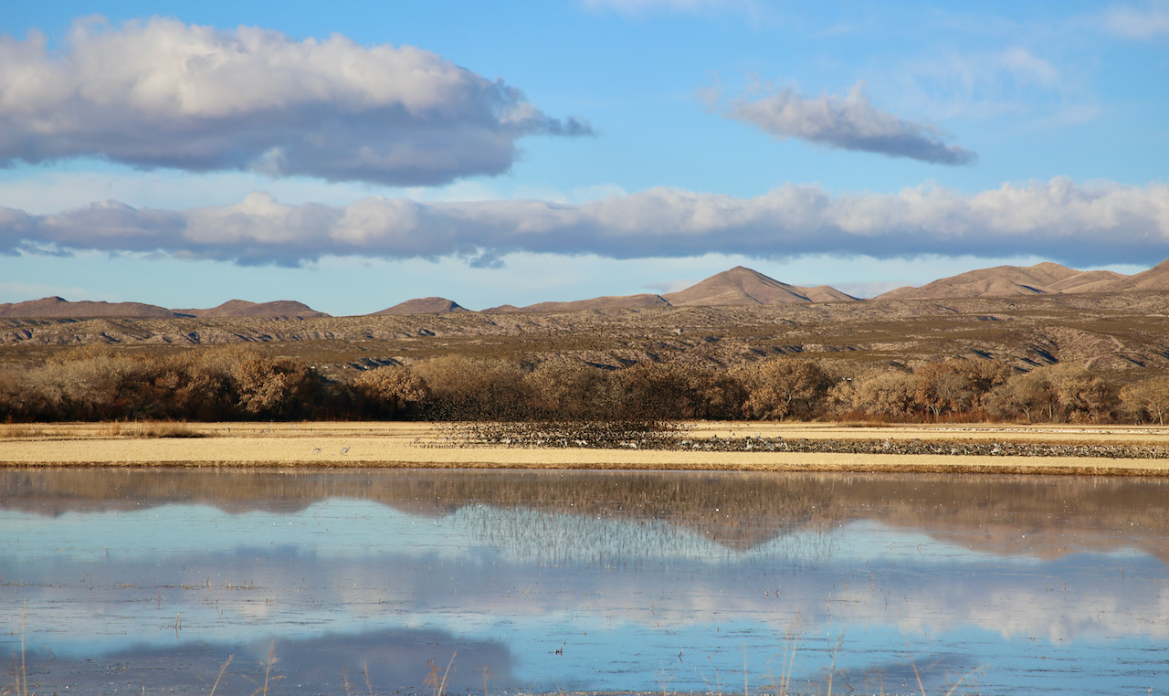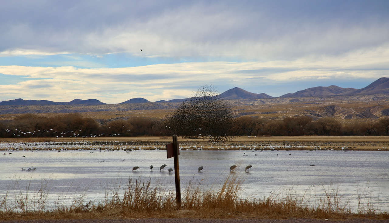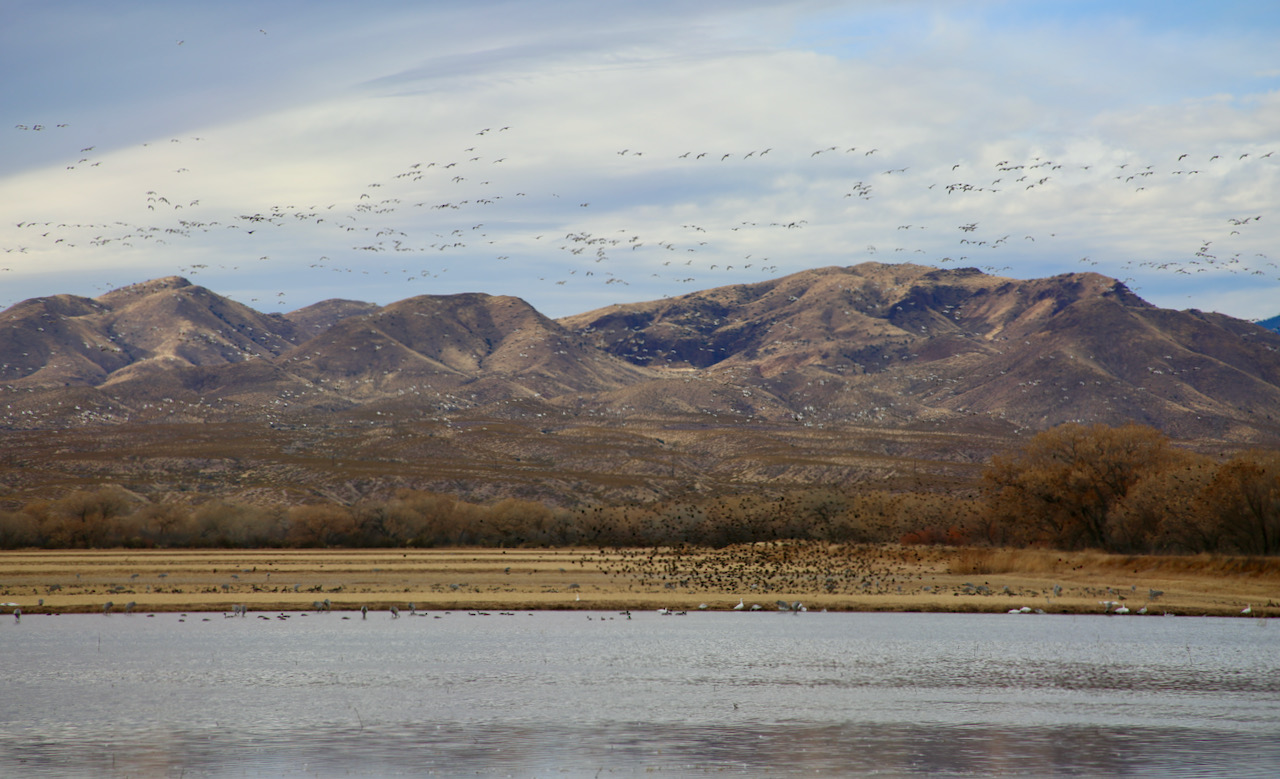 This morning starts off like all the rest — open eyes, sit up, look for something; except we missed the first exit to Bosque Del Apache National Wildlife Reserve and are saved by a dirt road that will get us lake side in time for the avian performance. People are here to watch the thousands of snow geese and cranes takeoff (hopefully at the same time), and to see the ducks, starlings, and bald eagle.