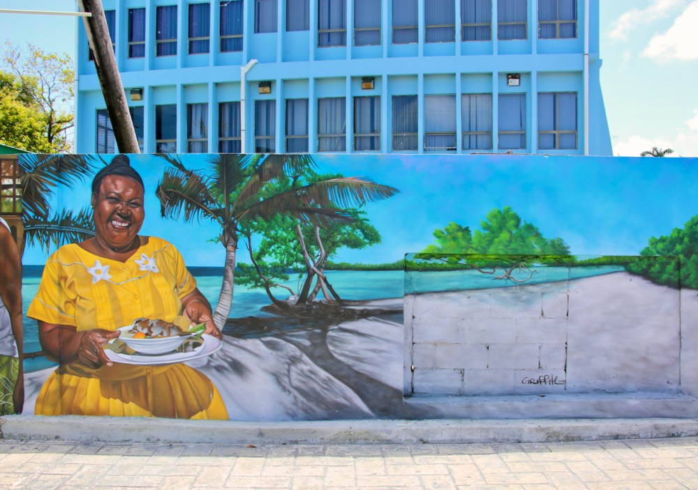 We get through passport control and customs rather quickly as we’re just another couple coming to enjoy the beauty that this country’s water has to provide. We step outside, before noon, and are greeted with a group of men holding signs, none with our name, and others offering to take us so many places. We take turns in the loo and then our driver arrives. Lamar will place us and our bags in the Adidas van (that’s what the logo looks like) and then go back in the heat for the other name on his sign, who is running late, so we leave without them.
