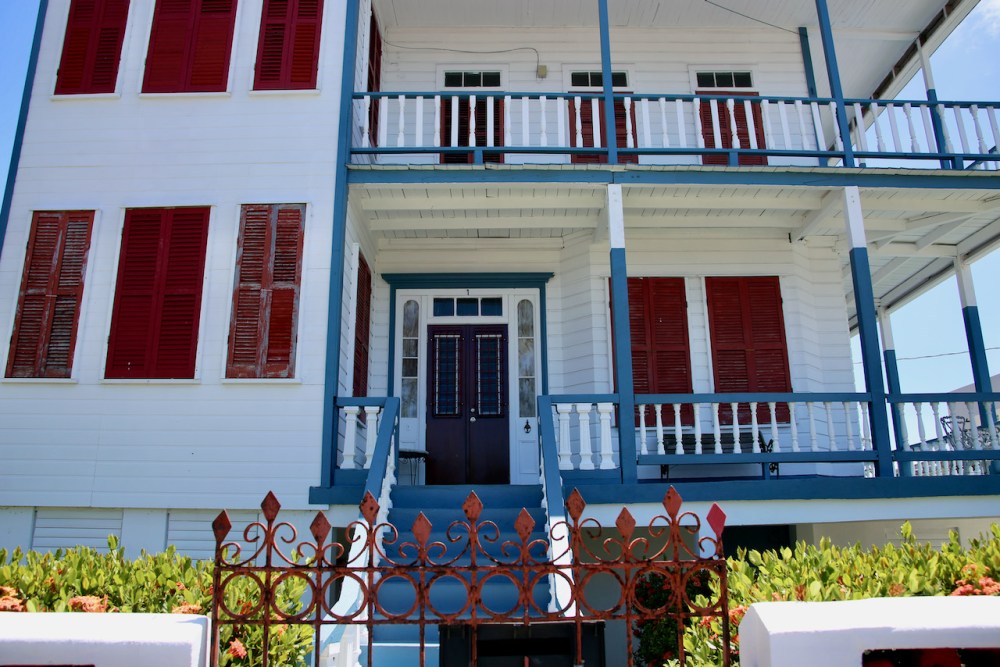 The woman behind the counter will check us in and give us the same restaurant endorsements; as will the porter who brings us and our bags to room 316B, the upper half of a duplex connected to another duplex via a wide staircase; after the short tour of the bar and pool so that we can get our icy welcome drinks consisting of a pink and yellow mix through a paper straw. The a/c is on in the sunroom and bedroom with one cute blue robe with white fishes folded neatly at the end. The doors and windows aren’t airtight and are made of mahogany, the national tree of Belize; which is popular for use in furniture, boats, and instruments – for being wet and salty.