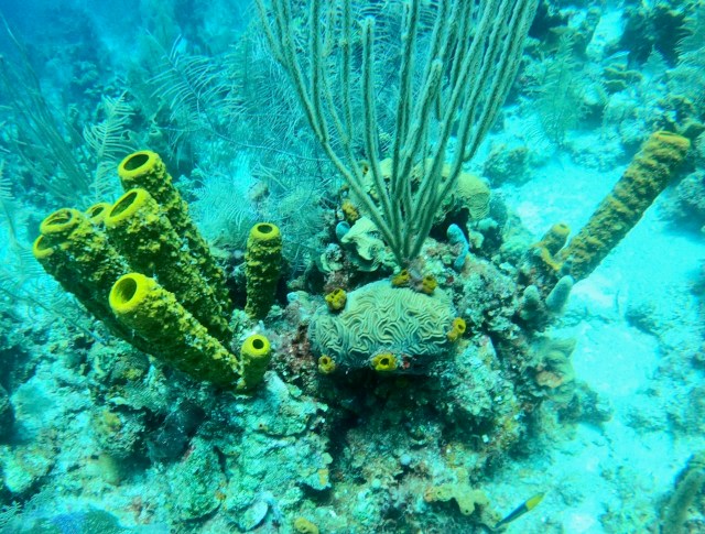 The first dive is sans wetsuit, and there are plenty of bright blue fish to keep us company. The second dive is with my 3mm wetsuit on and I’m about the same level of cold. I’m focused on colorful coral and hundreds of cyan sea life, while a few divers are spearfishing the lionfish that will be served with our lunch. I’m glad that we have volunteers helping to decrease the population of an invasive species, and then feed it to me with chicken, potatoes, coleslaw, rice, and beans.