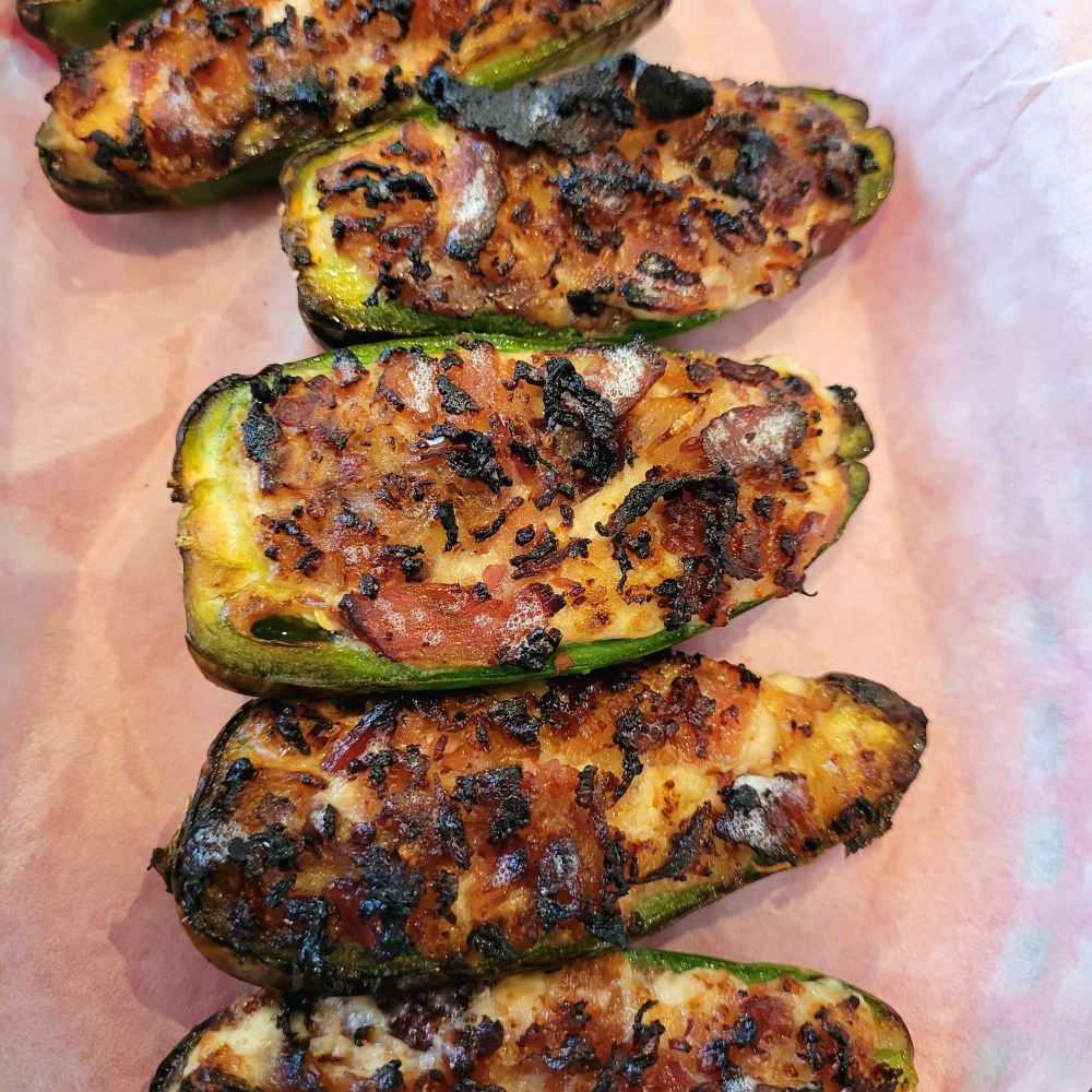 Anywho, I enjoy the convenience of precut vegetables that are sized for my small palate and always the addition of peas compared to the chunkiness that I chop up my carrots or beets or to Caleb’s ability to slice something in half before it’s considered bite size. We then order the poppers stuffed and topped with bacon to go with our chipotle carnitas pizza. There’s something about shredded meat (perhaps more flavor coverage area and tenderness) that adds to the enjoyment of a meal. Our dining experience wouldn’t be complete without people watching – eavesdropping on the old couple, watching the woman eat from the salad bar, and trying to determine what drugs the awkward trio are on.