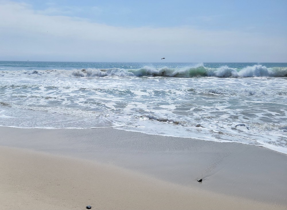 Up for a morning walk and I’ll add my 1mm sharkskin top that Caleb gifted me probably two years ago and I have yet to wear to my bag. This is good news though, because it means we’ve only been diving in warmer water. We make sure to grab my hood and thick gloves too – I will need them. We leave the house at 930am and four hours and 200 miles later we arrive at our suite by the sea. We drive to Oxnard State Beach Park to put our feet in the grass, sand, and water.