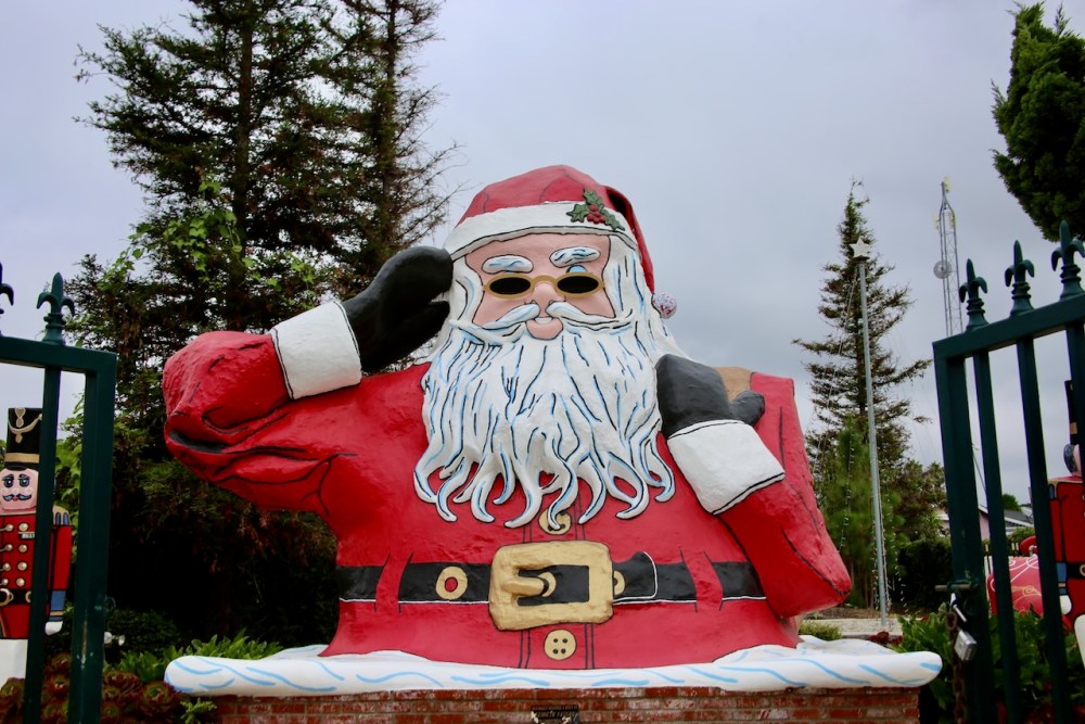 We drove to the Santa Claus statue because it showed up on the map. Not sure what I was expecting but I park in the lot next to it and luckily it’s maintenance hour or day because the gate is open, some words are exchanged, and we’re allowed in to take some pictures of Salutin’ Santa in Nyeland that was built by Kenneth Vaughn in Carpinteria. As far as traveling statues go, this one hasn’t seen much but inspires runners to travel half the distance in the Santa to the Sea half marathon in December.