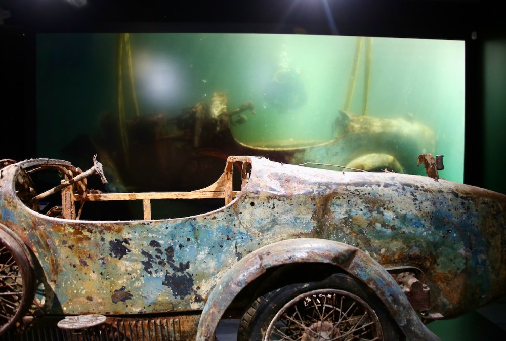 The car would still be there, and not now in the museum, if it wasn’t for the sympathy of a grieving family to sell the car to raise funds for a charitable foundation to protect against youth violence. Some 2,000 people showed up in the summer of 2009 to watch what was left of this car be hauled out of the lake after 75 years. The car is definitely a symbol of endurance as it lasted so long submerged, but water has a weird way of preserving and destroying (remaking) all things that it touches.