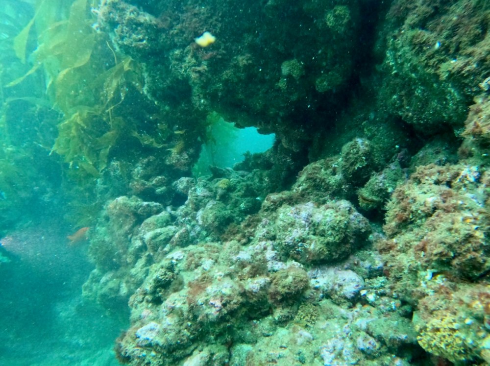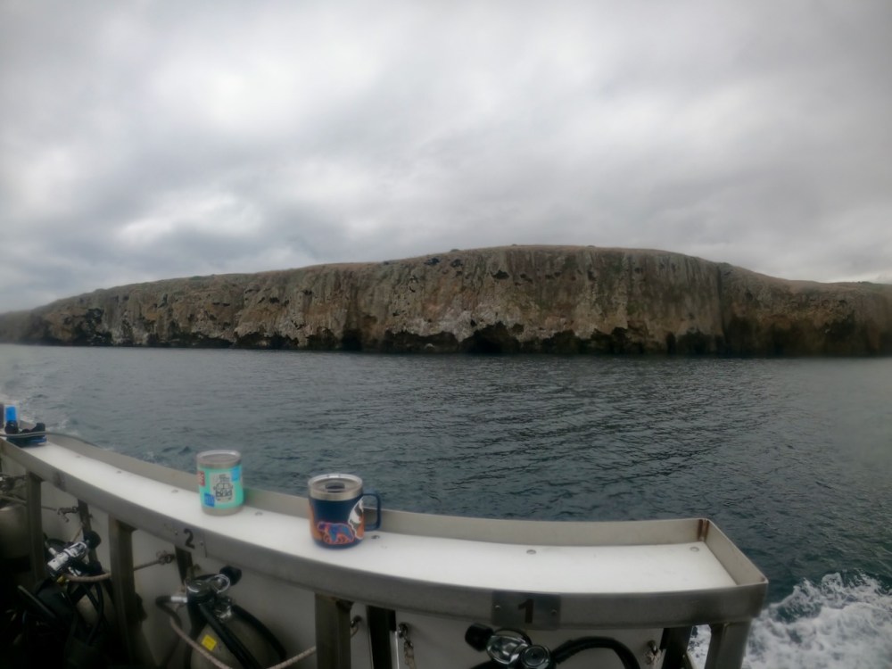 Our first dive will start later than the one on Friday, but we’re still promised three dives. We’re just not guaranteed certain locations as that depends on the captain’s opinion of the ocean’s mood. We start at Yellow Banks, which is on the southeast side of Santa Cruz Island. We’ll start out going northwest so we can return in the southeast direction. Underwater has been the only time I’ve used a compass and it helps to navigate without the resistance of the surface to return to the boat.