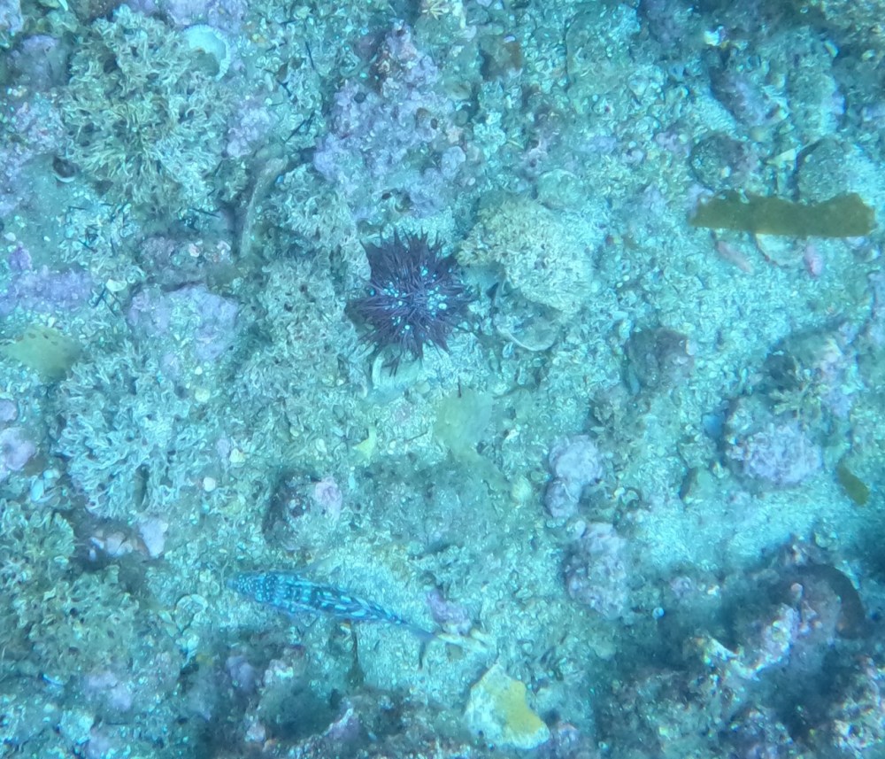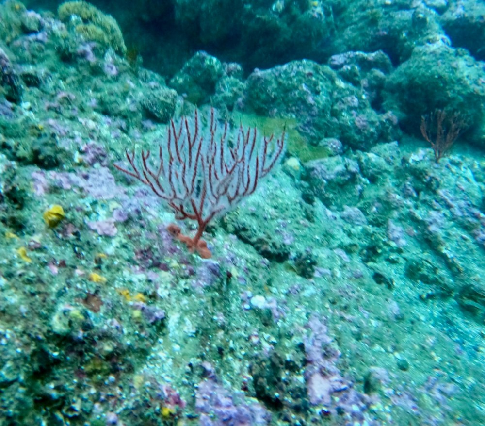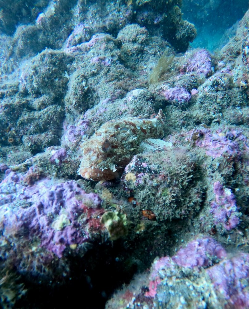 Big Scorpion Anchorage has so much to offer that we choose to remain here and dive it again after lunch. I’ll have a quarter of chicken today, since I’m more flexitarian than whoever mixed up their menu choice, with beans and potato salad that are way better than the rice. I also get to have a hot cocoa with lunch as the dive master who approached me earlier, thinking I looked familiar, just happened to know where the boat keeps the packets when they need the counter space.