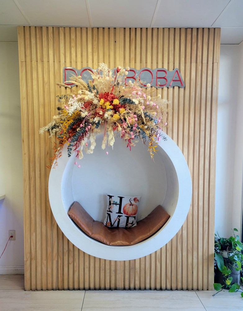 Next stop is Dori Boba for a roasted coconut matcha milk tea with boba for me and a tea without balls for Caleb. I decide I prefer mine without shaved coconut on top as that just means less space for my drink so the dried fruit can remain crispy.