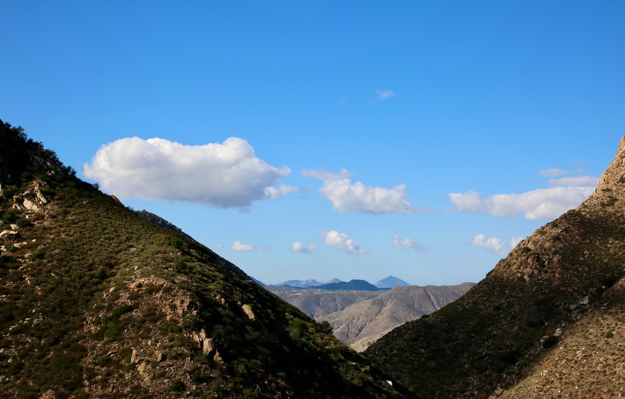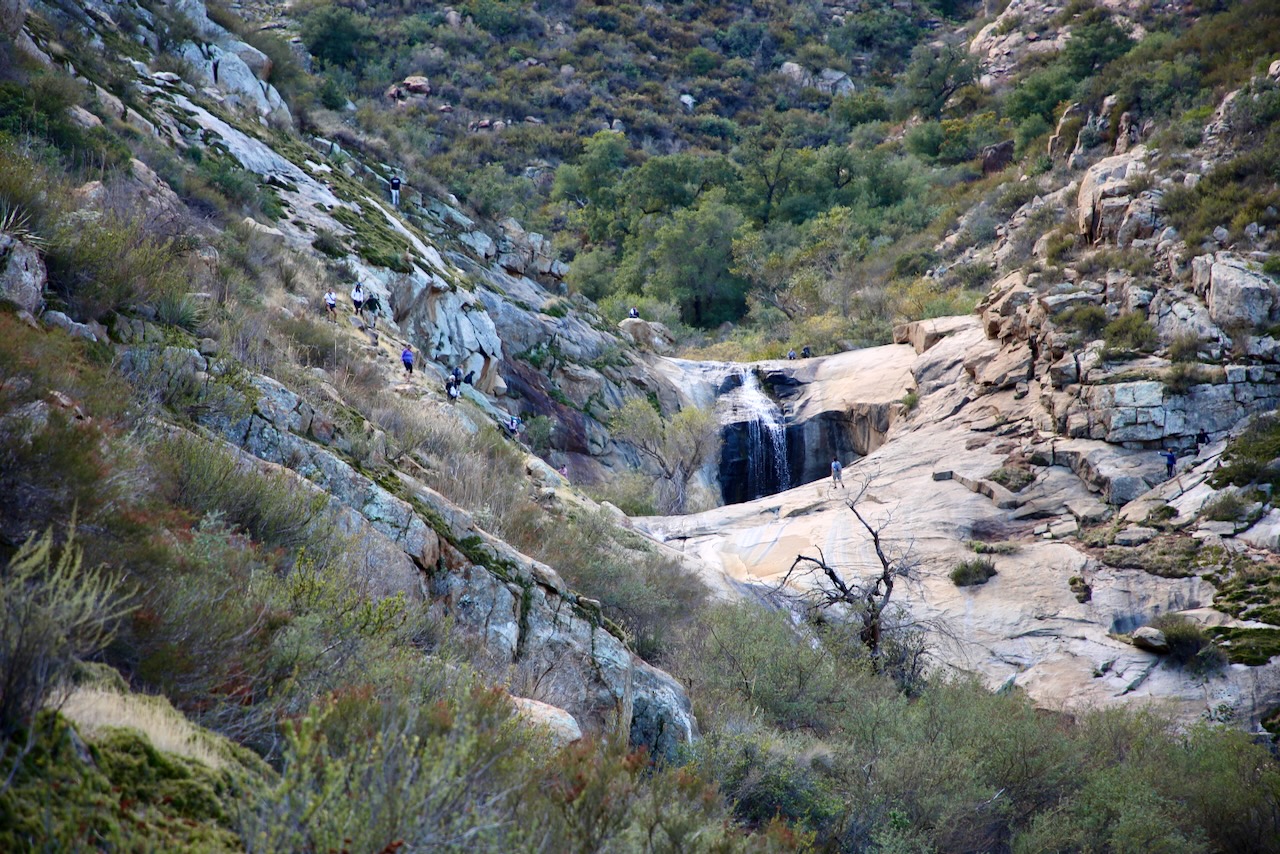 It’s a beautiful day to hike the Three Sisters Falls Trail in the Cleveland National Forest. It’s roughly 4 miles out and back with a thousand feet of elevation gain. The trail is rated from easy to strenuous, so it definitely depends on when you hike in the day and how fit you are before going. The 60-mile drive northeast is pretty, and the views on foot are worth a look. The path weaves in and out of sunlight and shade, of feeling expansive and narrow, and being deserted and crowded (if four people count).