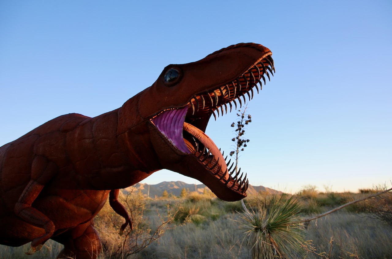 Caleb wakes me up at 430am when he gets up to pee and says he won’t go back to sleep. We stop at the Chevron on the way to the highway, but they’re closed, so we brush our teeth, cross into Arizona, and stop an hour later (welcome to mountain time) at another gas station. Our first planned stop is still 200 miles away, so luckily we find the Mormon Battalion and Butterfield Trail about halfway in-between. In the meantime, I enjoy the sunrise in the desert and the fog along the fence underlining the mountains as the temperature drops to the 40s.