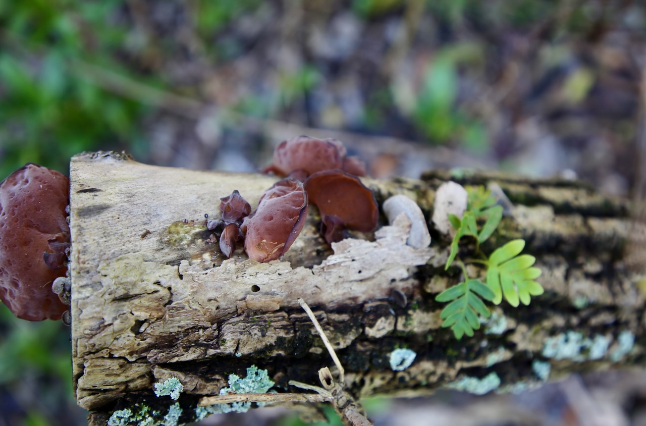 These little drowning pools are used by over 300 species of salamanders, frogs, insects, crustaceans, and other plants to create a micro-ecosystem. The vinery consists of twiners, such as honeysuckle, that weave their way upward by looping and twisting. Tendril climbers, like grapes and passion flowers, use spring-like hooks; and poison ivy attaches with aerial roots to get all the photosynthesis advantages of being high in the sun without the metabolic expense of creating support tissue to reach it on their own. The genus Kaempferia found here are the spices ginger, turmeric, and cardamom. We walk through the hardwood hammock and stare at the sinkhole flora.
