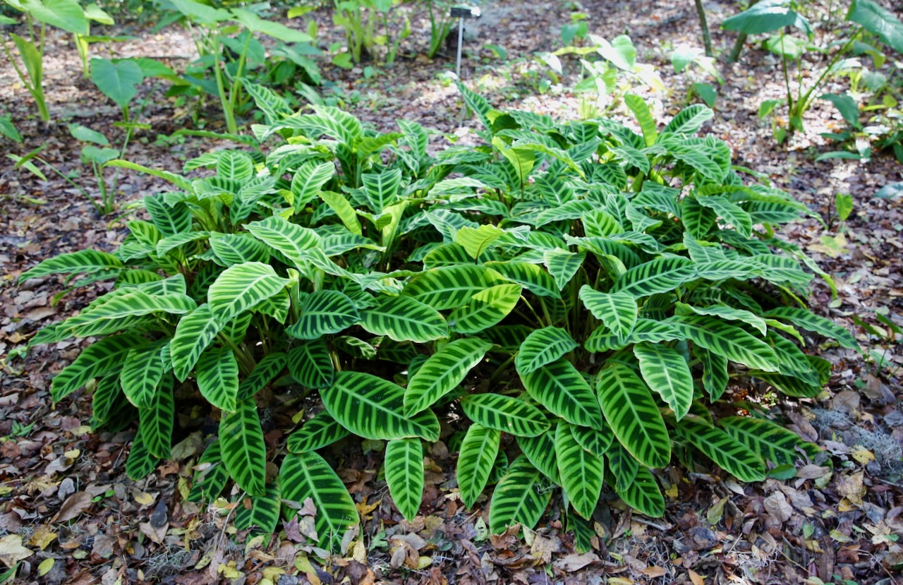 A maze is designed to challenge us, whereas a labyrinth is made to disengage our active mind by the increased focus of staying on a path that can be clearly seen from start to finish. This labyrinth is planted with mondo grass in the classical Cretan design which dates back to a Neolithic tomb in Sardinia from 2000-2500 B.C. I love the way the path plays on my senses. Constantly changing direction changes my view and I’m cautious to stay between the borders of grass that tickle my ankles as I pass. The bromeliad garden can include pineapple and Spanish moss and some carnivorous species that absorb nutrients from the dead insects that are drowned in their leaf center.