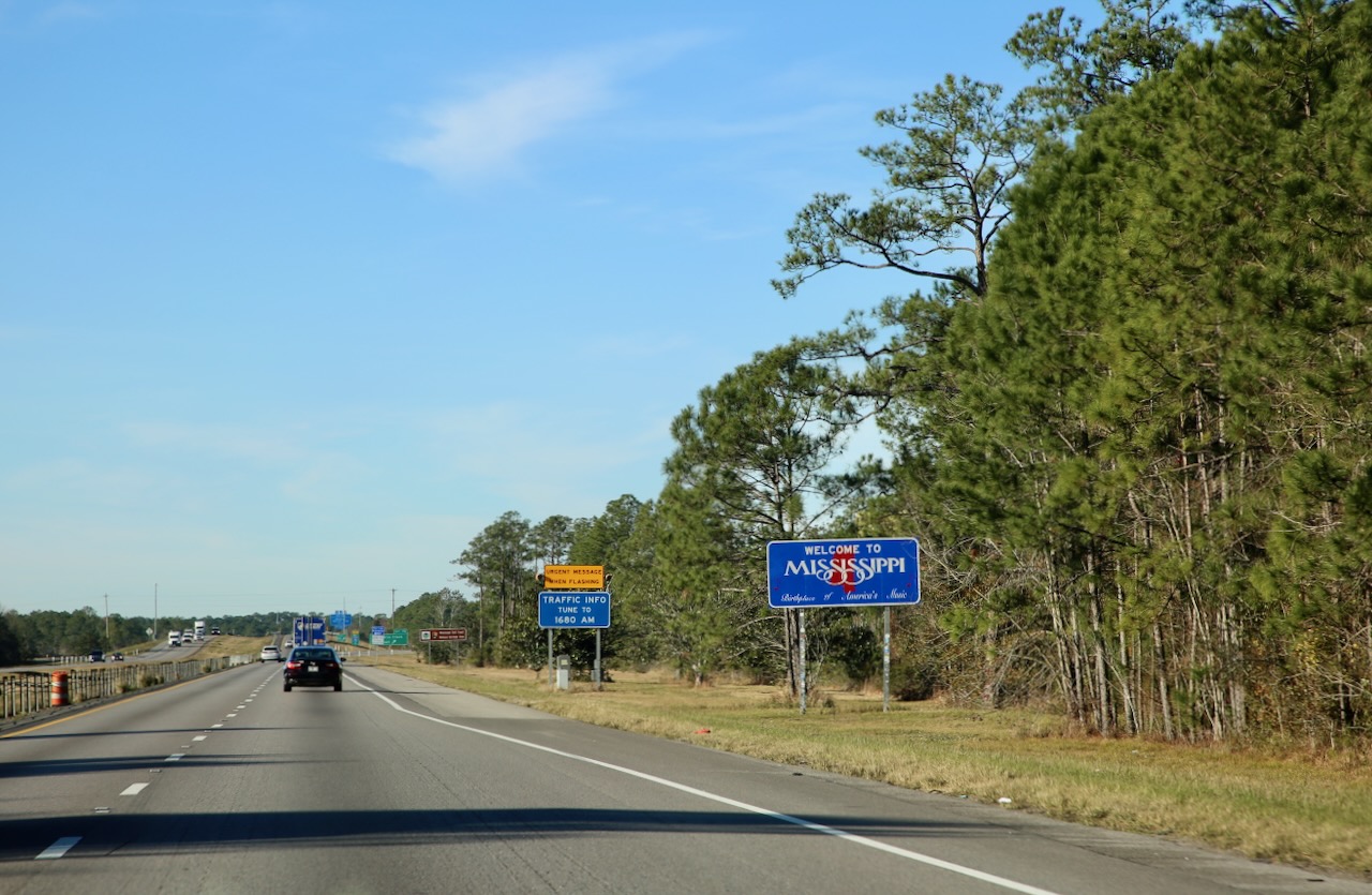 We wake up in Pensacola and I sit down with a mural of the city and the Blue Angels above within view while I chow down on a waffle with four different syrups – strawberry, chocolate, maple, and caramel – because they’re on offer and the waffle is divided into equal quarters. Caleb makes his breakfast into a sandwich, definitely a guy thing, and makes no fuss about ingesting the necessary calories for whatever the day brings. We’re starting later than usual, but it’s a good thing the road will still be there as we arrive. We pass through Alabama in an hour and arrive in Mississippi.