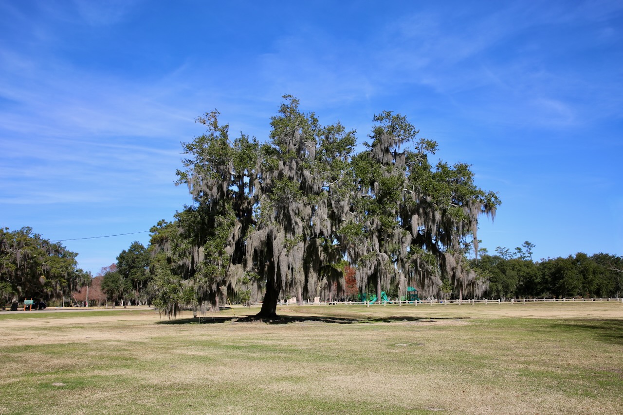 We enjoy a lovely walk under the Spanish moss-covered trees, along the beach, and out to the end of the pier before crossing the field of confetti (evidence of a prior celebration). The land here is beautiful, but the history is covered in blood and reduced to two plaques – one for Native People forced West and the other for The Enslaved forced into hazardous labor. I’m glad these reminders are here, as some statues and natural formations have been destroyed, and hope they help towards educating the future to not repeat the pains of the past; as there are many issues to deal with going forward.