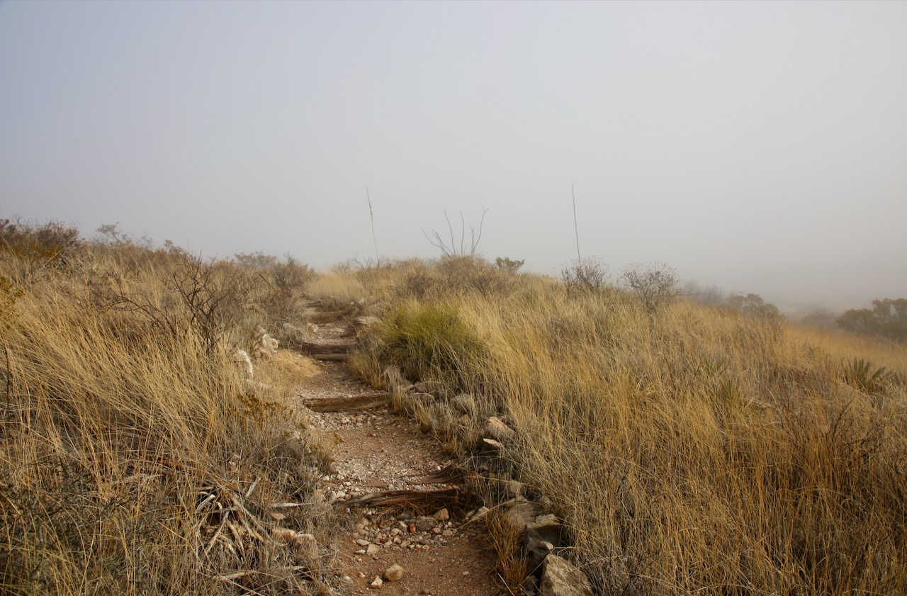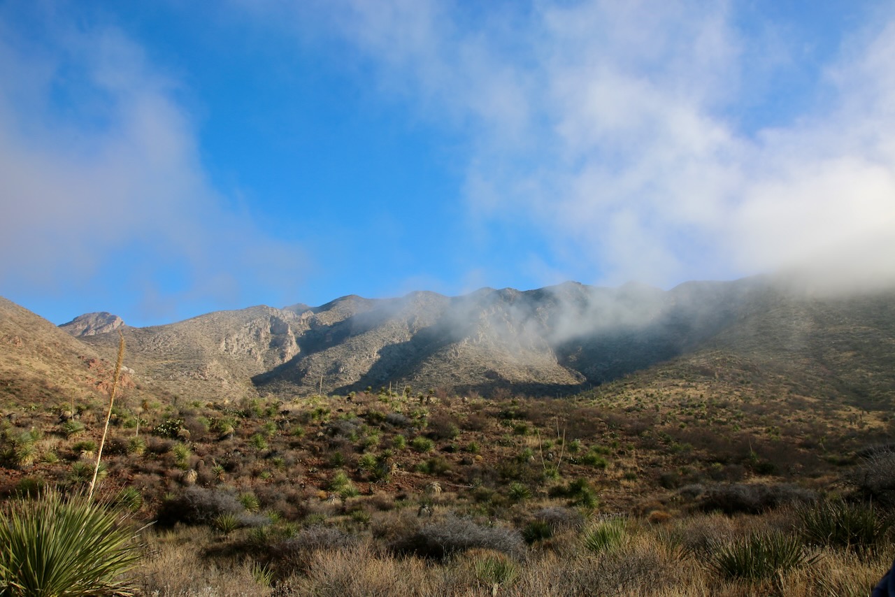 Breakfast is a balanced meal of an English muffin topped – with eggs and salsa verde and the other half with butter and strawberry jam – for me. We start the morning off in an El Paso valley driving through a beautiful fog until we crest 4,400 ft as we enter the Franklin Mountains State Park. I’ll have a look at some of the books in their collection: Texas State Parks: The First 100 Years, 1923-2023 and The Back-Country Kitchen while Caleb gets signed up for an annual pass to Texas state parks, a $70 fee that is now free to active duty military, veterans, and their same-vehicle guests.