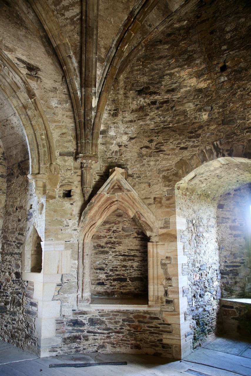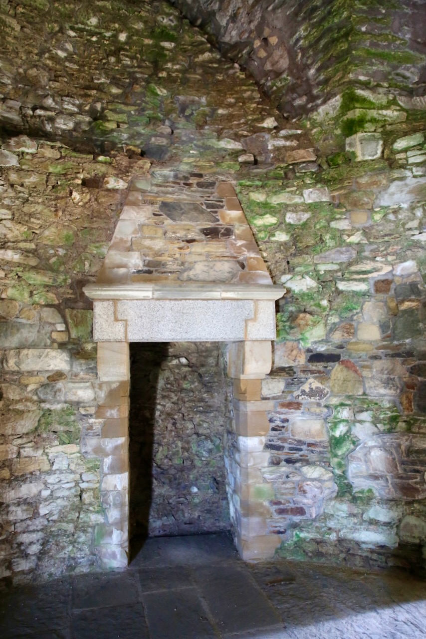 Dermot built the first castle on this site nearly 900 years ago and a second castle was built, probably by his son-in-law, in the 1170s before he died in 1176. The present castle – one of four Marshall castles in Ireland in Kilkenny, Carlow, Ferns, and Lea for land control by another Norman magnate – was completed in 1224. Left standing 800 years later is the southeast tower, with a preserved Chapel inside, walls beside, and another tower with more sun exposure on both sides of its thick walls. There are windows for shooting and others for sitting with benches, just as I imagine my perfect home, complete with a round staircase.
