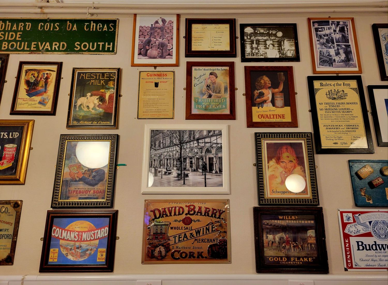 I’ll pan around, while our guide speaks, taking in the mountains, apartments, and fields under the cloudy sky before we descend and make our way south to Wexford. We’re staying at Ocean View, aptly named, with a living room encased in windows. With no one home, we drive back into town for dinner. We stop at Simon Lambert & Sons, a gastropub, with a kitchen closed at 6 pm (as after 4 pm it’s pint o’clock in Ireland). There is sheet music above the chandelier and old seats from the original Theatre Royal that opened in 1832, was converted to a cinema in 1942 with the stage intact, and then demolished in 2005 so that its replacement, National Opera House, could open in 2008 and be over three times larger.